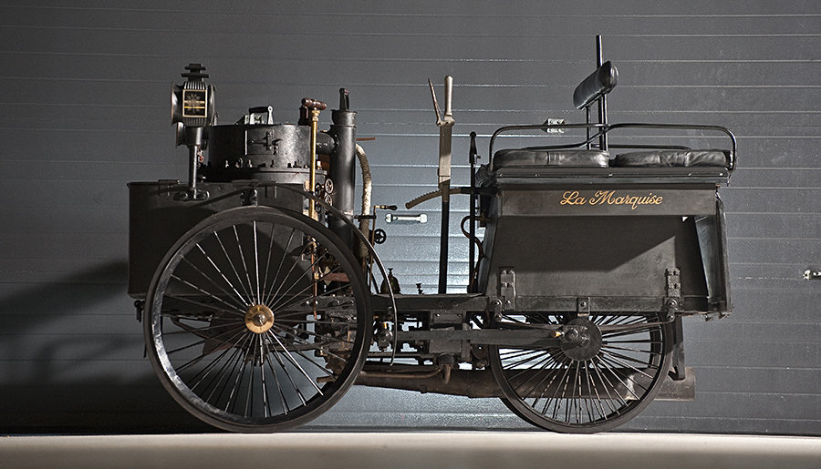 among the excitement of the ongoing Frankfurt Motor Show, sometimes it is nice to take a step back and reminiscent about the forefather of automobiles, like this 1884 De Dion Bouton Et Trepardoux Dos-A-Dos Steam. yup, it is a steam engine powered automobile, a technology that powers our automotive – most notably railway trains – before internal combustion engine came about. this twin compound steam engines automobile feature “spade handle” steering, solid front and rear axles and semi-elliptic springs, single-acting mechanical brakes and locomotive-style connecting rod motion.
