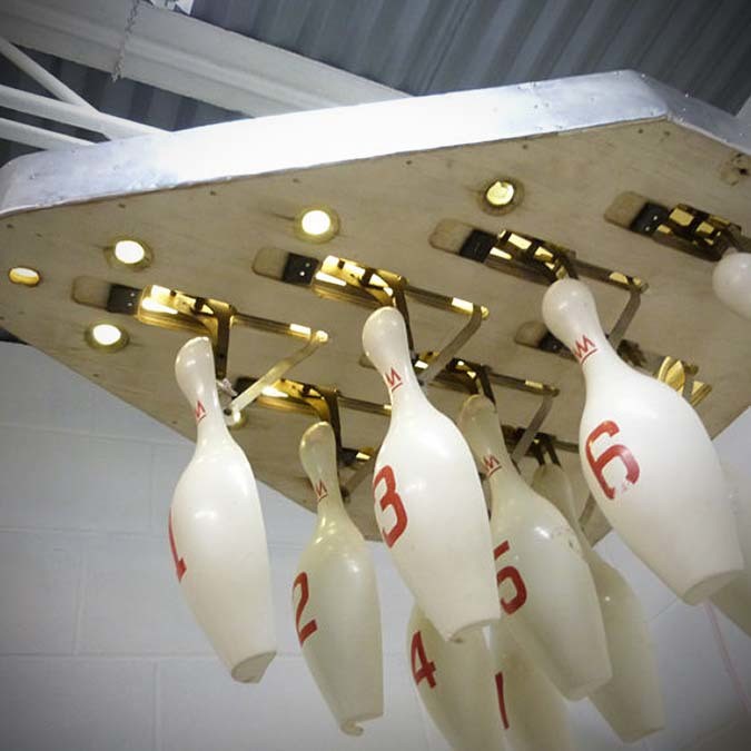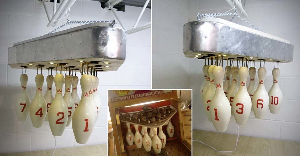 it has been a while since we have a serious browse-through at the Etsy store and it had to be a sold out item. we know it sucks and pointless to feature this item here but how can we resist spreading words of awesome stuff? the 1950s Bowling Arcade Ambient Light definitely deserves some mention, sold or not. this super cool handing lamp, dubbed the Bowling Arcade Ambient Light 1950’s by its maker Renegade Vintage, is upcycled from 1950s bowling by Renegade Vintage and instead of the orignal bulbs, a pair of brand new 8W 13″ (1 feet or 33cm) T5 fluorescents are used with the light dispersion through clear vintage marbles as well as the mechanism slots, giving it a warm ambience that mimics the glow and color that it probably had during its heyday. this should most definitely put a wide smile on the face of any individualists, style connoisseurs, vintage lovers and bowling fanatics. we are suckers for beautiful vintage objects that are repurposed into other uses and it is obvious that this one isn’t an exception. it certainly beats Ikea lamps anytime of the day or best any vintage lamps you will find in your local flea market. as for the price, we guess there’s no point brooding over it cos’ it looks this is the one and only ever and it was sold on the 7th. we are not surprised, good things always get snapped up as fast as a super car gets from standstill to 62 mph. we love to have it ourselves too but reality bites. however, a few more larger views of this awesome hanging lamp is a bit of a consolation which you can find below.
