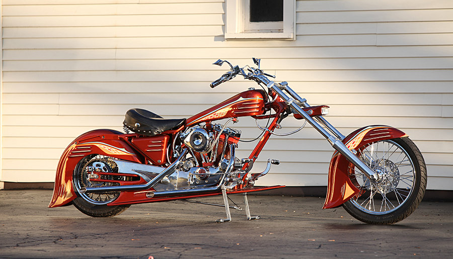 [quote]With “10 Over” Big Dog Wide-Glide front end, featuring three-degree backset bearings for true trail, Conquistador’s many features include hand-built front and rear fenders with 1936 Graham automobile hood vents, a custom headlight and custom gas tanks. Templates were made from the Mayan-design graphics and pinstriping, which were faithfully replicated and complement the copper paint finish. Custom-built billet aluminum was used for the front and rear brake brackets and the forward controls, and other special hand-built features include a polished aluminum chain guard and a one-of-a-kind folding kickstand. A set of “Z” bars, a custom seat, a Jack Daniels riser plate, a drag-style exhaust system, matching diamond patterns on all pedals and grips, “skull” taillights, a stainless-wire Indian rear wheel and a billet-wire aluminum front wheel complete this stunning custom bike.[/quote]the 1972 Harley-Davidson “Conquistador” Surf Bike is set to go under the hammer at the Hershey sales organized by RM Auctions from October 6 – 7, 2011 at the Hershey Lodge and is expected fetch between $10,000 to $20,000. check out more images of this awesome custom chopper after the break.