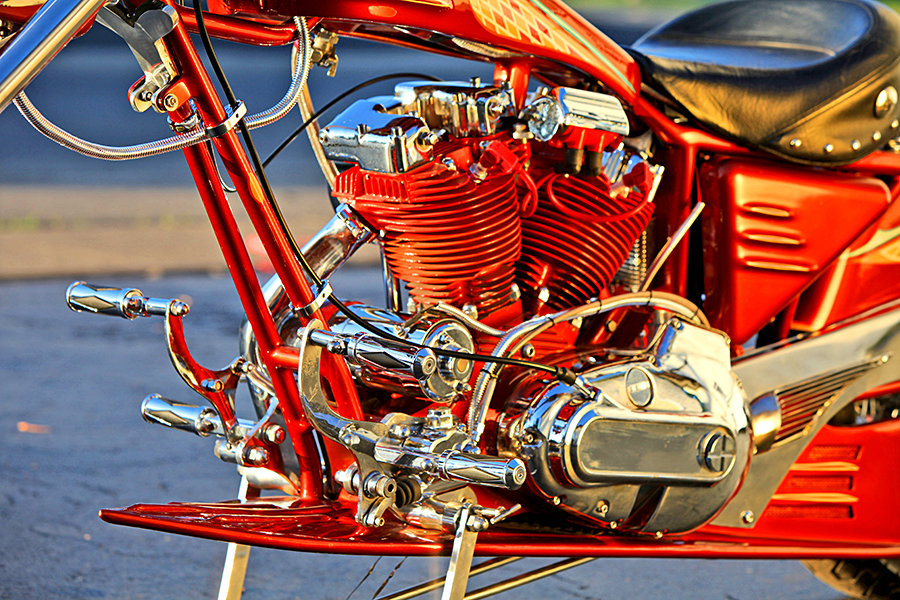 this caught my eyes because it says it was built in year 1972 but it doesn’t look a bit like a 70s issue Harley-Davidson. so this isn’t just any Harley. it is said that this wicked bike was commissioned by and custom-built for Edd “Kookie” Byrnes of 77 Sunset Strip TV fame back in 1975 by custom bike builder, Bad Boys California and named “Conquistador” after the Spanish conquerors of the 1500s. after the completion, body molds linked to this bike were destroyed and thus making this unit a one-of-the-kind motorcycle. but that was then. the bike was subsequently restored with redesigned custom-built ridge frame with a surfboard design (hence the name ‘Surf Bike’) and equipped with a new ‘heart’ – a rebuilt Harley-Davidson V-twin engine with a slight overbore and flat-top pistons that gives it a 1,100-cc capacity. other features include a rebuilt transmission, S&S carburetors and a Big Block high-torque starter.