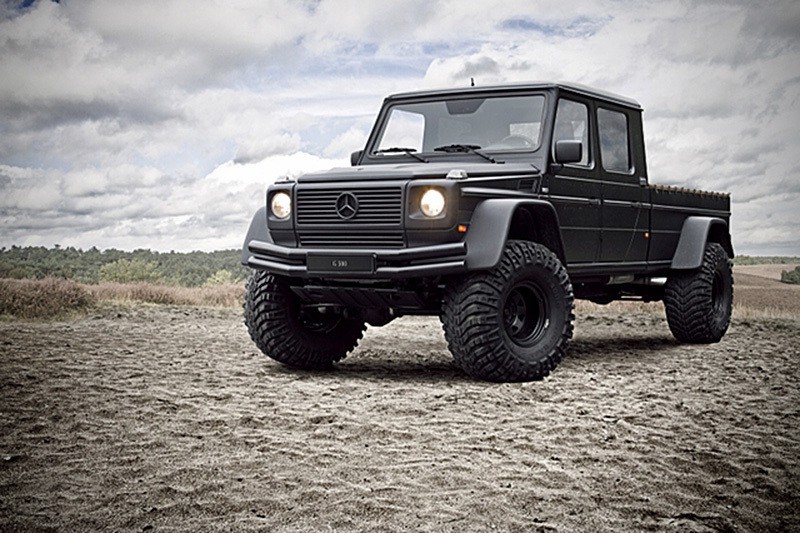 one glance at the title, you know this is not your regular Mercedes-Benz truck (hint: XXL). lovingly customized by German tuner GWF, this ten-year-old pickup truck from the Stuttgart folks sport a stretched body (it’s 238 inches or about 6.3 meters long), a four-door double cabin and fitted with a set of 38-inch Mickey Thompson off-road tires for true beaten track invasion. powered by an US-spec 5.0-liter V8 engine, it features a fierce and currently in-vogue matte black paint job and has an untouched interior that comprises of black leather with electric heated seats, heated front screen and shares some of the equipment level as the US-spec G500 up to year 2003. this awesome truck was recently put up on eBay for a princely sticker of $99,000 but without a successful bid and thus, interested folks might want to keep their eyes peeled as it may be put under the hammer again. hit the jump for a few more look.