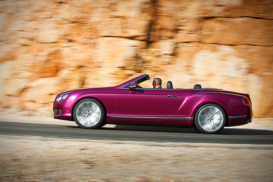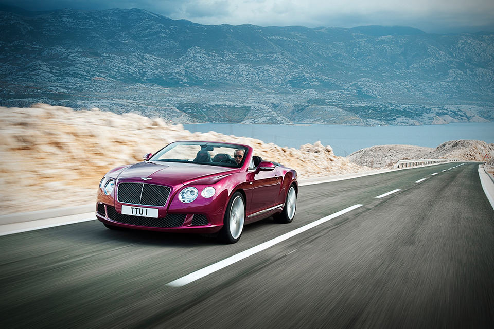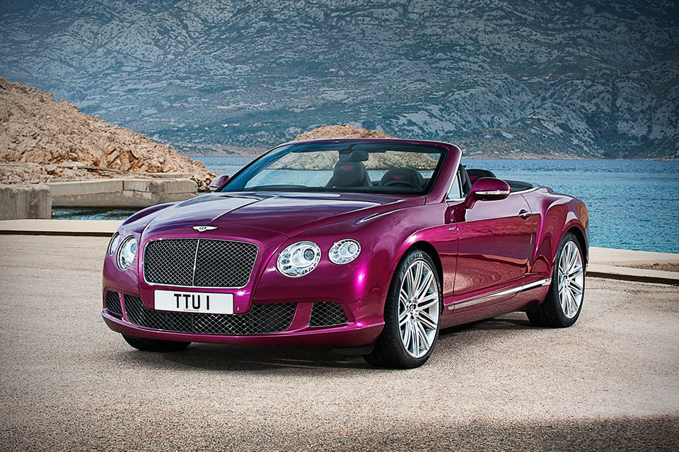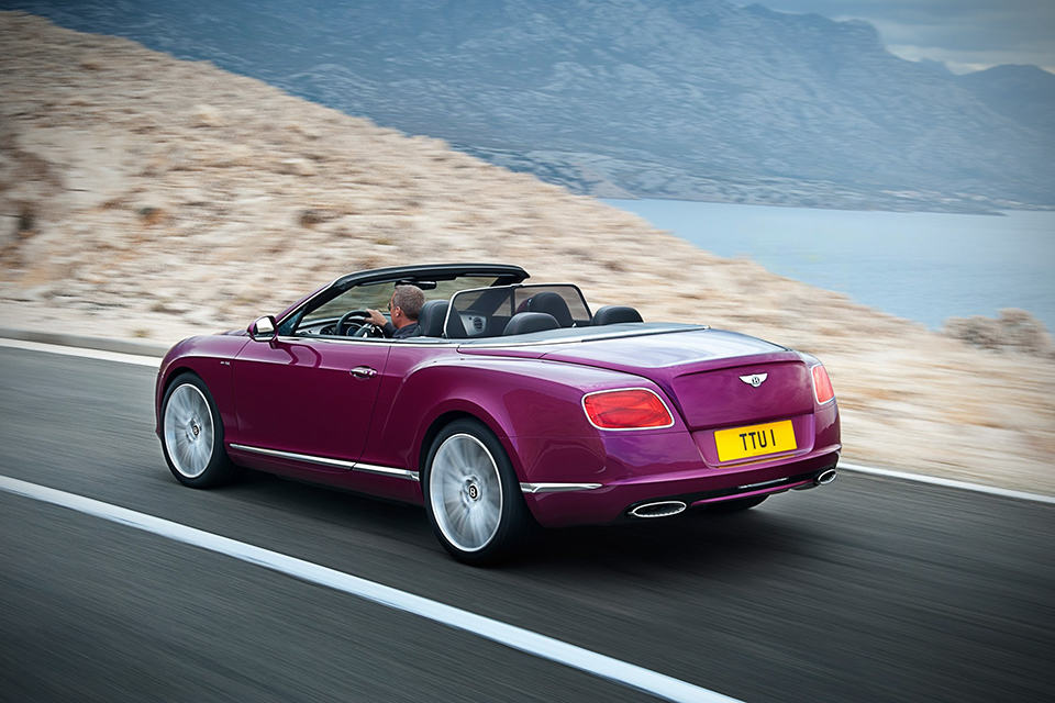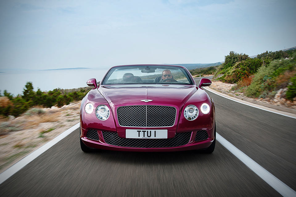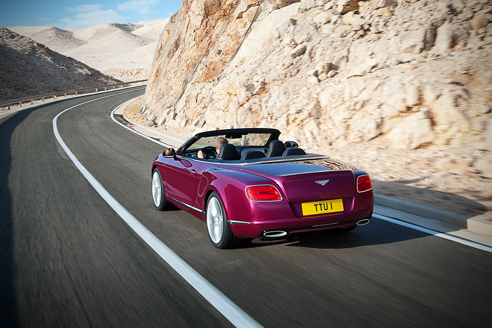 what you see here is not just a Continental Coupe with a top sliced off - it is the 2013 Bentley Continental GT Speed Convertible, a open-top performance flagship from the UK marque that happens to be the world's fastest four-seat convertible with a top speed of 325 km/h (202 mph). lurking behind the matrix radiator grille is a 6.0-liter twin-turbo W12 petrol unit...