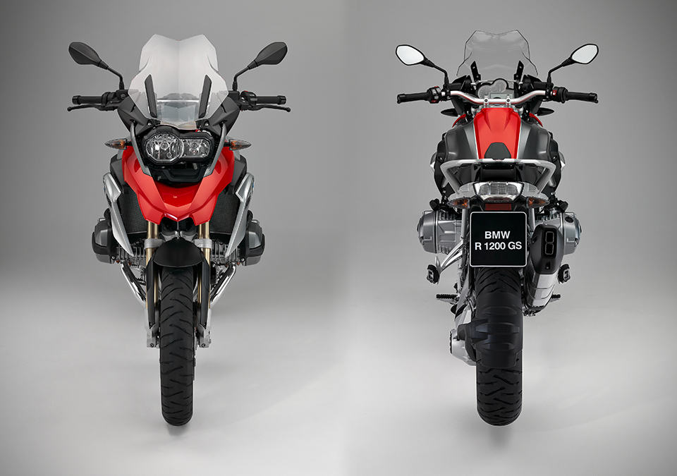 other highlights include a new intake system for optimum output and torque, new suspension with torsionally stiff tubular steel bridge frame and bolt-on rear frame, newly developed Telelever up front and EVO Paralever at rear, refined master chassis geometry data and long swingarm for improved traction, adjustable handlebars, radially mounted Brembo Monobloc brake calipers (front) and 2-piston floating caliper with enlarged brake disc (rear), integral ABS, LED main headlamp with optional integrated daytime running light, adjustable touring windshield and a new instrument cluster with onboard computer. the new BMW R 1200 GS rides on 120/70 R19 at the front while the rear gets the 170/60 R17 which, according to BMW, is the world first, tailored specially for the R 1200 GS. despite the reengineering, the 2013 model still bears the signature adventure-touring bike look. the new model will be available in four main paint finishes including Alpine White, Racing Red, Blue Fire, as well as Thunder Grey Metallic.