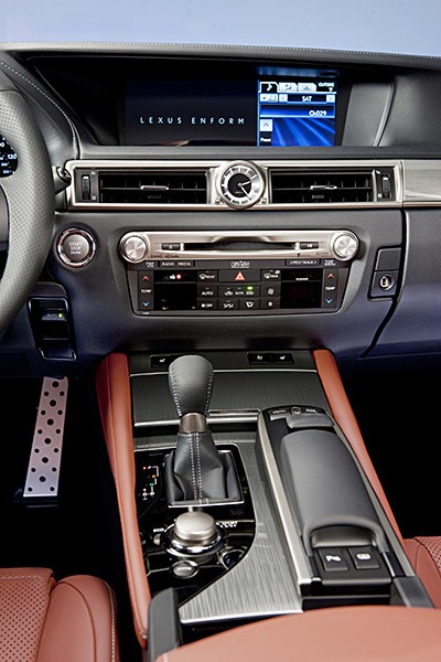 Painstaking attention to detail was applied to the GS cabin as well, to create a balance of luxurious and technological amenities and emotional design. The new layout of the long, sculpted dash gives the driver and front passenger a sense of roominess through its clean center stack and new, large high-resolution center control display placed deep near the front windshield. Most of the comfort and convenience controls, such as audio and climate, were relocated to provide a cleaner and more sophisticated dash layout.