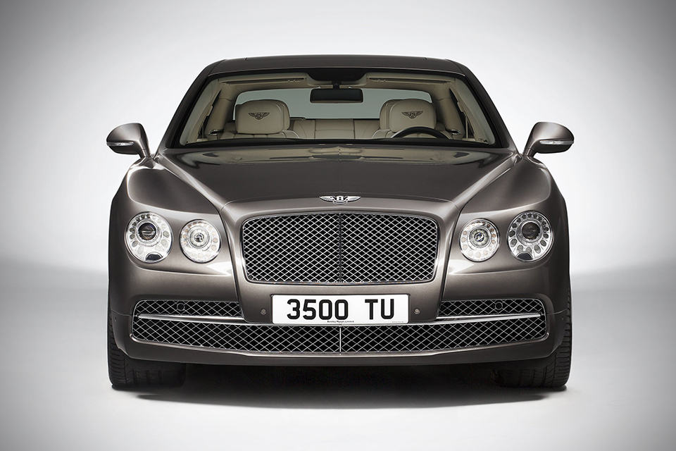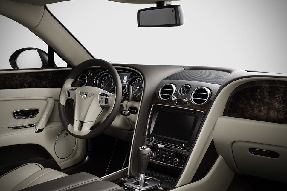 Bentley has unveiled the all-new Bentley Flying Spur ahead of its global debut at the Geneva Motor Show 2013 next month. said to be the ultimate in luxury sedan with unrivaled performance, the new Flying Spur from the UK marque comes with a bold statement: “fastest, most powerful four-door Bentley model ever.” to fulfill that claim, the new Flying Spur is fitted with same 6.0-liter twin-turbo W12 petrol unit found on the Continental GT Speed. the 12-cylinder unit puts out an awesome 616 bhp (460 kW), along with 800 Nm (590 lb-ft) of torque to its rear bias continuous all-wheel drive via a ZF 8-speed automatic gearbox that enables this 2,475 kg (5451 lbs) luxury beast to rocket from naught to 100 km/h (62 mph) in a mere 4.6 seconds and on its way to a top speed of 322 km/h (200 mph). the traditional styling cues of Bentley is unmistakable and so is its new athletic design that gives it the sporty stance, along with a sportier roofline, a more upright face, arched front and rear fenders, and LED day-time running lights, dipped headlights and taillights characterizing the Flying Spur front and rear profiles. the inside is a spacious, contemporary cabin touting 600 new parts and handcrafted leather hides (including roof lining and pillars!) and wood veneers, infortainment system with WiFi hotspot, a rear seat entertainment suite, a new handheld touch screen remote and an eight-channel, eight-speaker audio system. the 2014 Bentley Flying Spur can be ordered (when it is available) in four- or five-seat configuration. no word on when it will be officially rolled into your local dealerships or at how much greens it will sweep off your bank account. hit the jump for a small gallery of the 2014 Bentley Flying Spur.