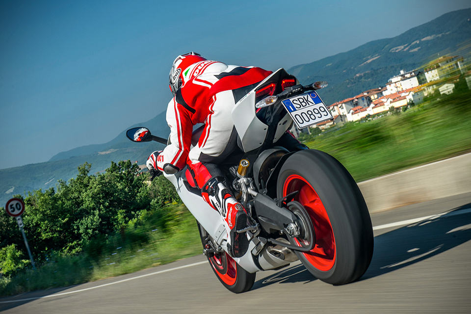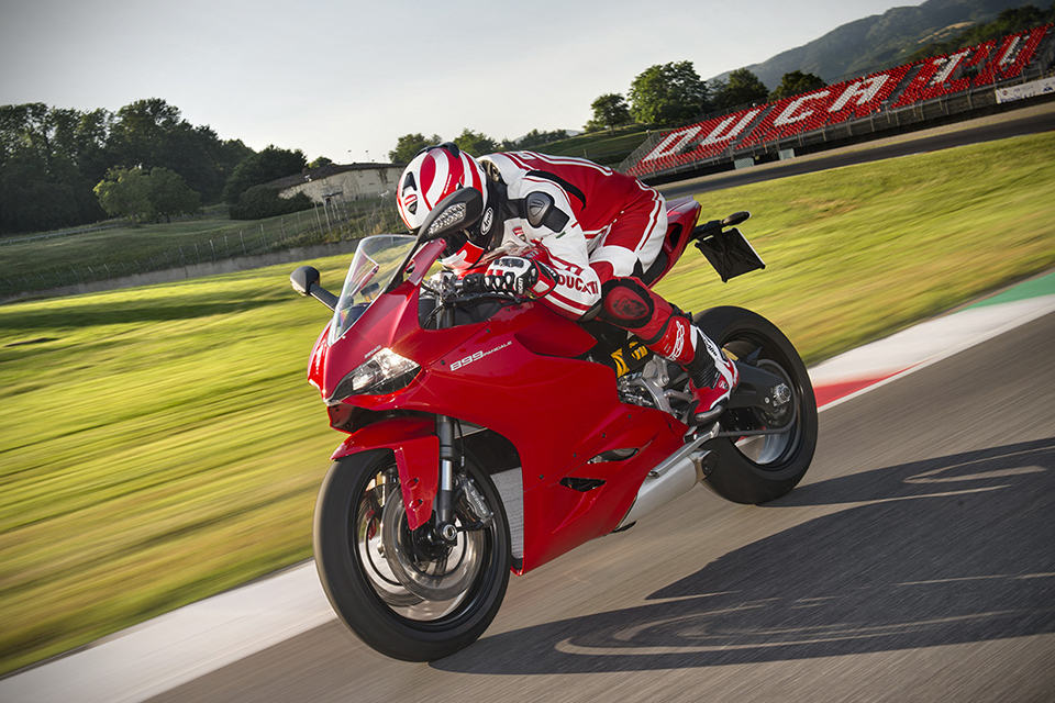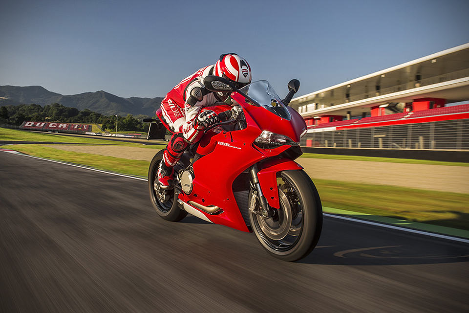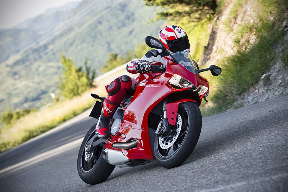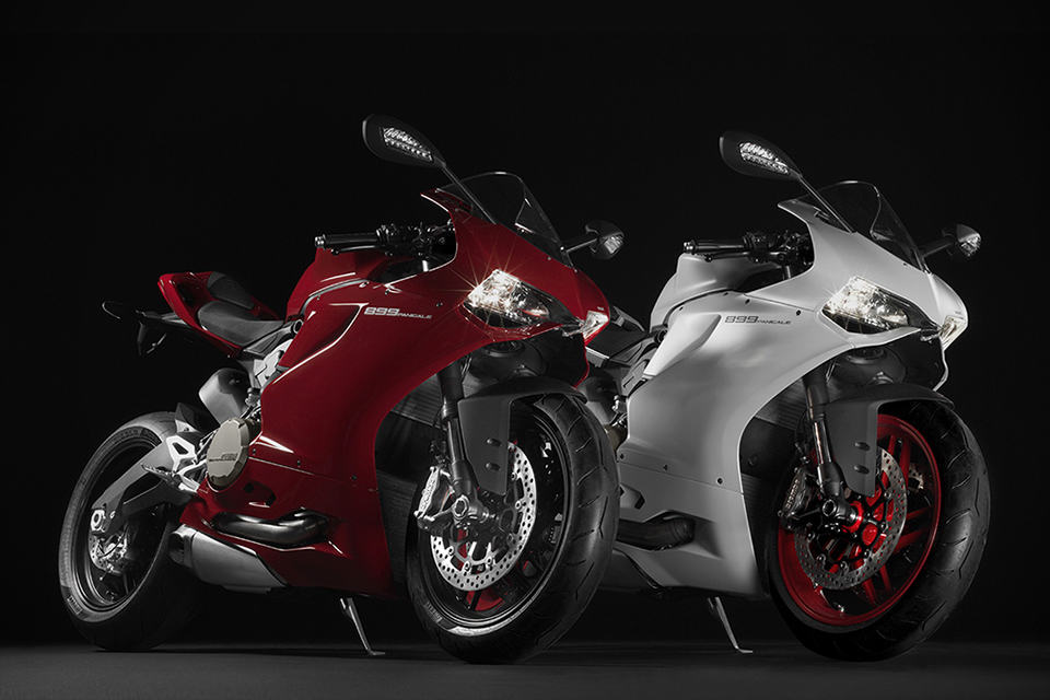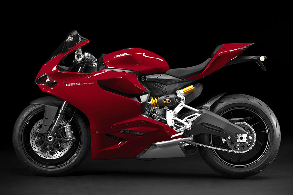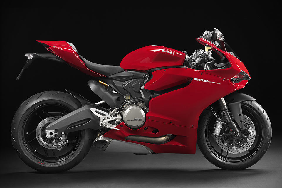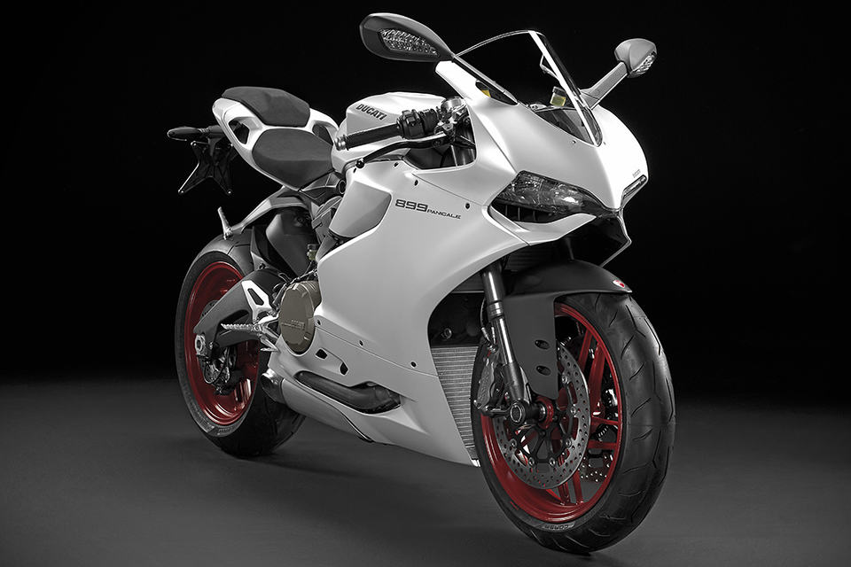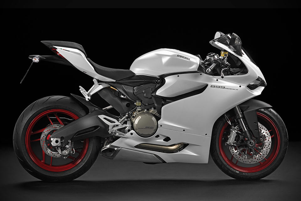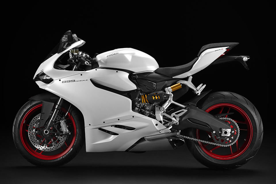 other highlights include a new compact instrumentation panel, LED positioning lights, LED brake lights, three rider-selectable riding modes (Race, Sport and Wet), Ducati Quick Shift (DQS), Ducati Traction Control (DTC), Engine Brake Control (EBC), Ride-by-Wire (aka electronic throttle control), Brembo brake system with triple stage anti-lock brakes, Showa Big Piston Forks (BPF) fully-adjustable front forks, Sachs fully-adjustable rear suspension unit and 17″ ten-spoke wheels shod in Pirelli Diablo Rosso Corsa rubbers. the 2014 Ducati 899 Panigale Superbike will be available in Ducati Red matched to black wheels for $14,995. there’s also an Arctic White version that’s paired with red wheels for an additional 300 bucks, on top of the 15 grand.