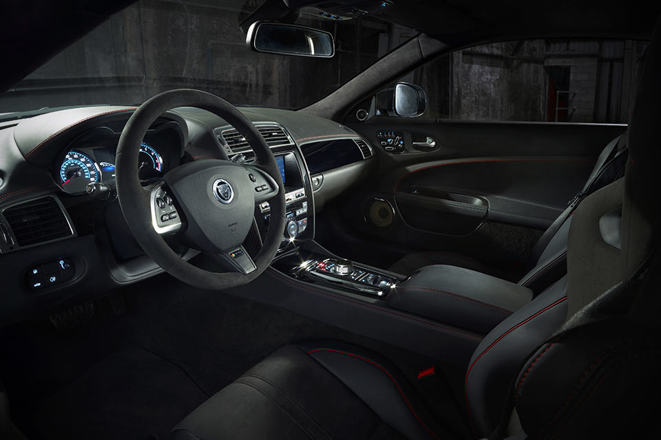 if your idea of a track car is not spending 90 percent of your waking hours in a car tuning shop, then you will need a track-ready car right out of the factory. in that way, you can actually have real fun time on the track as oppose to spending precious moments letting your mechanic muck around with your ride. as such, we thought the 2014 Jaguar XKR-S GT might just be the right car for the job. conjured up by Jaguar’s very own ETO division, the 2014 Jaguar XKR-S GT is basically a tricked out, track-ready (and yet still totally road-worthy) version of the XK coupe. although it is fitted with the same 542 hp (405kW) 5.0-liter V8 supercharged unit as the XKR-S, the GT model is a few tads faster – making zero to 60 mph in just 3.9 seconds, but the real kicker here is, it still maintains the same fuel efficiency as the XKR. of course, other tweaks are in place to give you the edge on the track. immediately noticeable is the bespoke aerodynamic package that comprises of a carbon fiber front splitter, dive planes, extended wheel arch spats, a massive rear wing, rear diffuser and an aluminum valance – giving the XKR-S GT an incredible maximum downforce of 145kg. along with that, expects this road-legal track car to sport features such as a six-speed gearbox, active electronic differential, a carbon ceramic brake system (six-pod front and four-pod rear), newly developed suspension, height adjustable and bespoke adaptive dampers, and huge 20″ forged lightweight alloy wheels, wrapped in Pirelli Corsa 255/35 front and 305/30 rear. initial production of this track-ready sports coupe is limited to just 30 examples, each carrying a price tag starting from $174,000. arriving this summer. in the mean time, may we invite you to catch a small image gallery, along with a promo video of this beauty below.