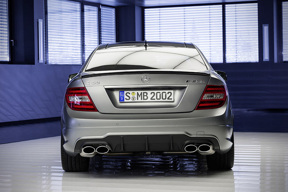 other details include titanium grey-painted variable intake manifold. a a distinctive aluminum bonnet to aid heat dissipation, new AMG light-alloy cross-spoke rolling stocks shod in 235/35R 19 (front) and 255/30R 19 (rear) rubbers, AMG sports stripes in matt graphite grey above the side sill panels, bootlid lip spoiler (only on sedan and coupe models), high-gloss black exterior mirror housings, radiator grille and daytime driving lights surround, darkened headlamps and a sporty yet functional interior (as always) with three different equipment and appointment to choose from. on the performance department, the Edition 507 makes the century sprint in 4.2 seconds (4.3 seconds on the Estate model) and has a raised top speed of 280 km/h (174 mph) – thanks in part to its SPEEDSHIFT MCT 7-speed sports transmission. the 2014 Mercedes-Benz C63 AMG Edition 507 will go under the limelight at the Geneva Motor Show in March with the sales of all the three models (coupe, sedan and estate) to begin on April 8, 2013. price is, of course, yet to be announced. check out the a small gallery of the Edition 507 after the break.