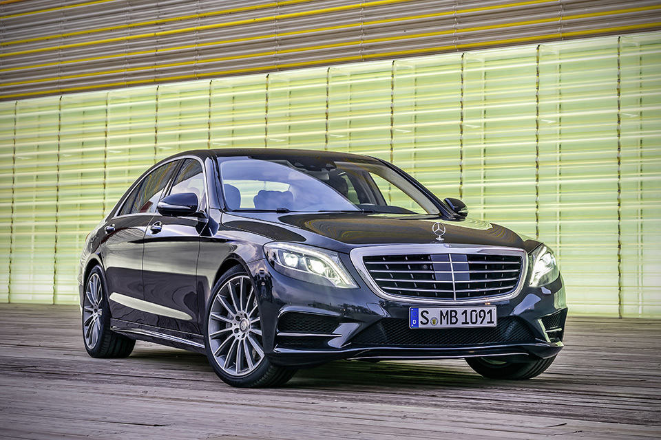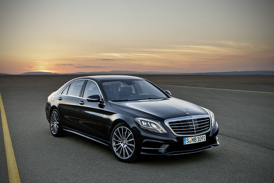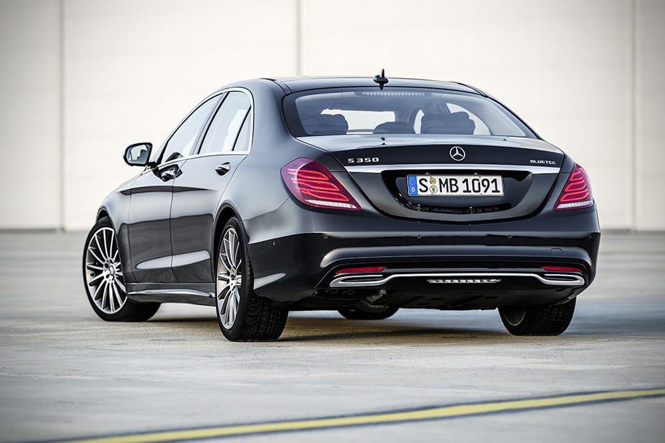 other features include an aluminum hybrid body shell, Adaptive Damping System Plus, enhanced full air suspension system known as AIRMATIC, generous use of wood trim and metallized switch surfaces in the cabin, an increase in rear knee room for rear passengers, two high-resolution 12″ TFT color displays: one as its instrument cluster and the other for infotainment us, heated armrests, a business center console (featuring telephone handset, additional stowage compartments, folding table etc), five different rear seat variants to choose from, ten-speaker audio system with Frontbass system, and adaptive highbeam assist plus and night view assist plus. slated to be available later part of the year in the European market, the prices for the new S-Class start at €79,789.50 (around US$103,000) for the short-wheelbase S 350 BlueTEC and runs up to €107,645.50 (about US$139,000) for the S 500 long wheelbase model.