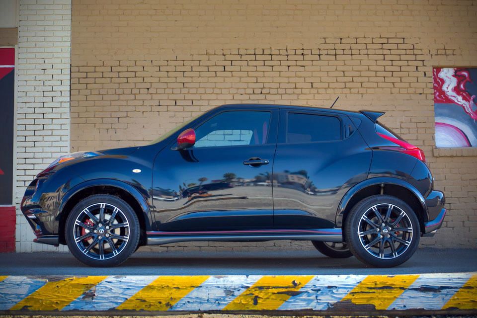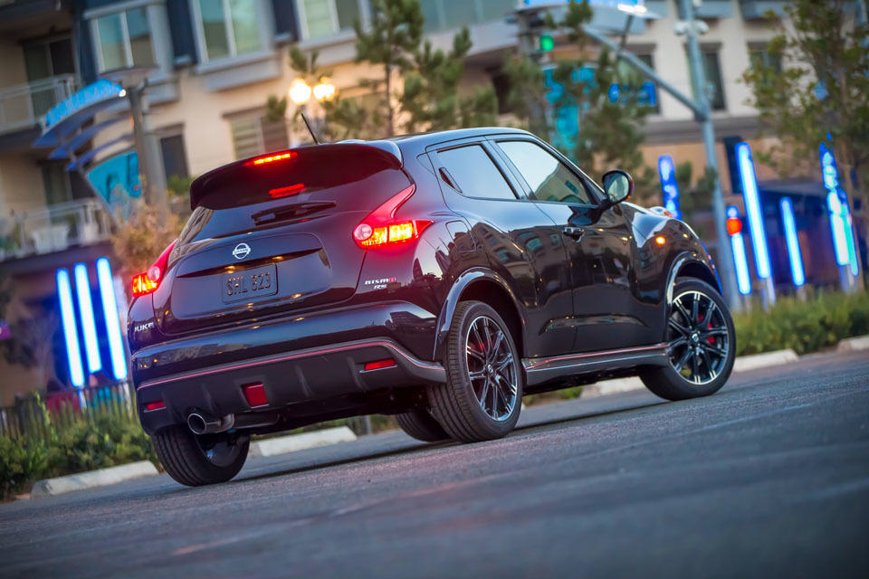 you may not have a chance to tame the beastly Juke-R and the only other option, the NISMO tricked out Juke only leaves much to be desired, but fret not, cos’ there’s the 2014 Nissan Juke NISMO RS that will lend you up 215 hp (18 horses more than the “regular” Juke NISMO) and up to a peak torque of 210 lb-ft. the “up to” is there for a reason, as this souped up RS (i.e. “race inspired”) version of the NISMO tricked out Juke will be available in two guises: an all-wheel drive version and a front-wheel drive model. both versions are fitted with a 1.6-liter DOHC 16-valve turbocharged engine, yielding 211 hp and 184 lb-ft of torque for the AWD, and 215 hp and 210 lb-ft of torque for the FWD version. the AWD gets Xtronic CVT with eight steps “gearing”, while the FWD gets a 6-speed stick shifter, along with Helical Limited-Slip Differential.