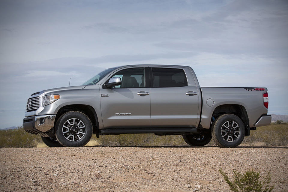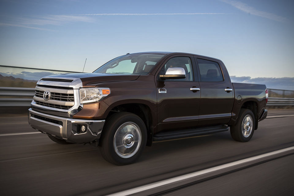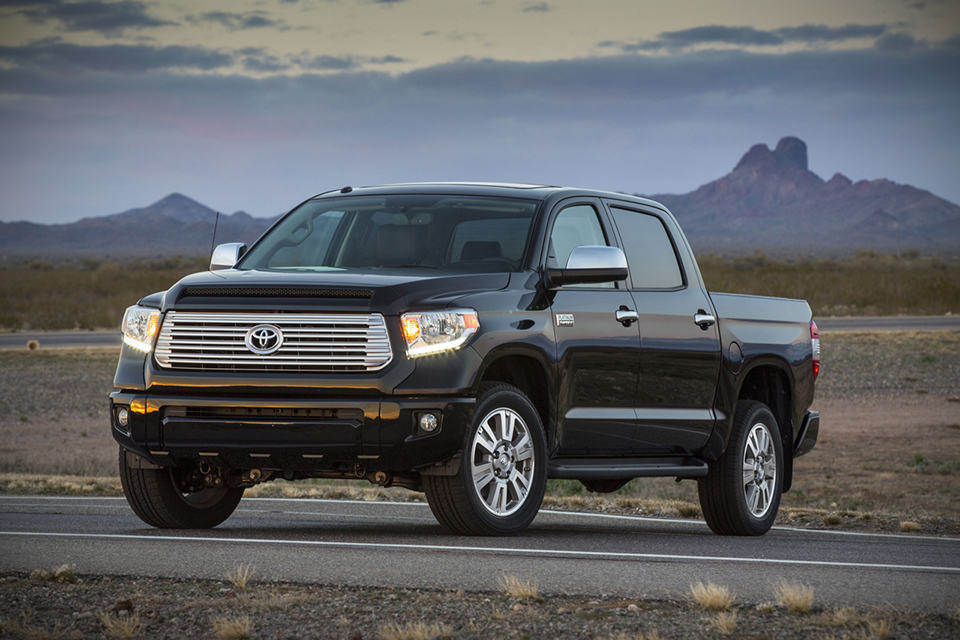 need to real workhorse for your daily runabout without sacrificing style? unveiled recently at the 2013 Chicago Auto Show, the 2014 Toyota Tundra Pickup Truck might just be worthy of your consideration. in fact, the new Tundra should have quite a bit of fans’ attention, cos’ it sports the first major change since 2007, albeit being more of cosmetic than anything else. under the hood, the new 2014 Toyota Tundra Pickup Truck is still offered in the same three power trains: the base 4.0-liter V6 unit that puts out 270 hp with 278 lb-ft of torque, mated to a five-speed auto gearbox; a 310 hp 4.6-liter V8 motor with peak torque of 327 lb-ft, matched to a six-speed auto transmission; and sitting on the food-chain is the 5.7-liter V8 that pumps out 381 hp with a maximum torque of 401 lb-ft, also mated to a six-speed automatic gearbox. highlights include a new chiseled exterior styling, including an all-new front design that integrates the hood and grille for stronger, masculine look, a newly designed rugged bed and tailgate with integrated spoiler, an all-new interior styling that combines refinement and improved functionality, backup camera and Bluetooth, 3.5-inch multi-information display in the gauge cluster, Blind spot Monitor with Rear Cross Traffic Alert and a new-look instrument panel. available in three trim levels: Limited, Platinum, as well as 1794 Edition (a tribute to the ranch, founded in 1794) with three cab styles: two-door Regular Cab, four-door Double Cab and four-door CrewMax, and a choice of either 4×2 or 4×4, the 2014 Toyota Tundra Pickup Truck is set to roll into Stateside dealerships this September. prices are yet to be announced. and oh, in case you are wondering, the 2014 Toyota Tundra Pickup Truck is fully engineered, designed and assembled in the good’ol US or A. we are not a pro truck observer but one thing for sure is, it will be unlikely for us to see this beauty outside of the USA.