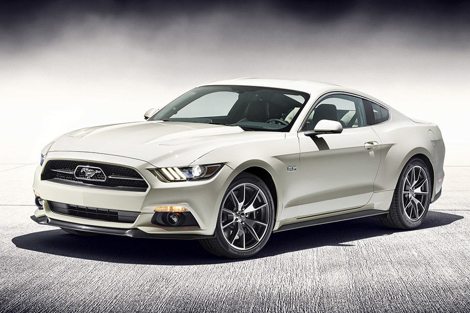 when you have a ride as iconic as the Mustang, surely something special needs to be done for its golden jubilee, right? no. we are not thinking of a cheesy birthday cake in the shape of the famous pony… on the other hand, maybe you could get one on your own, but for the rest of the fans, you can look forward to the 2015 Ford Mustang 50th Anniversary Edition. unveiled at the 2014 New York International Auto Show, this handsome stallion is based on the 2015 Mustang GT fastback with Performance Pack. only 1,964 units (marking the year of the first pony) will be offered with a choice of Wimbledon White of Kona Blue and you can also choose between a six-speed stick shift and a six-speed automatic transmission. basically, those are about the only two things you need to choose from cos’ this ride is packed to the brim with nearly every available options right of the factory.