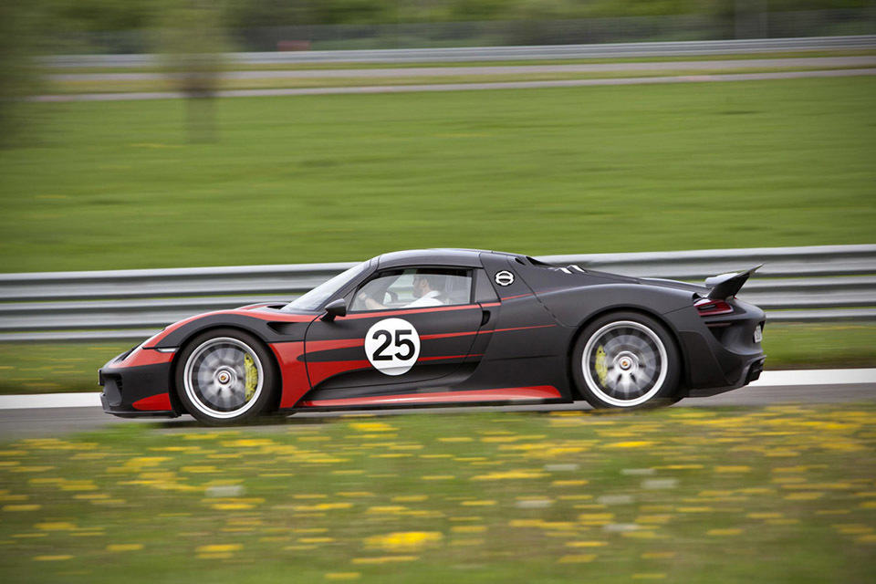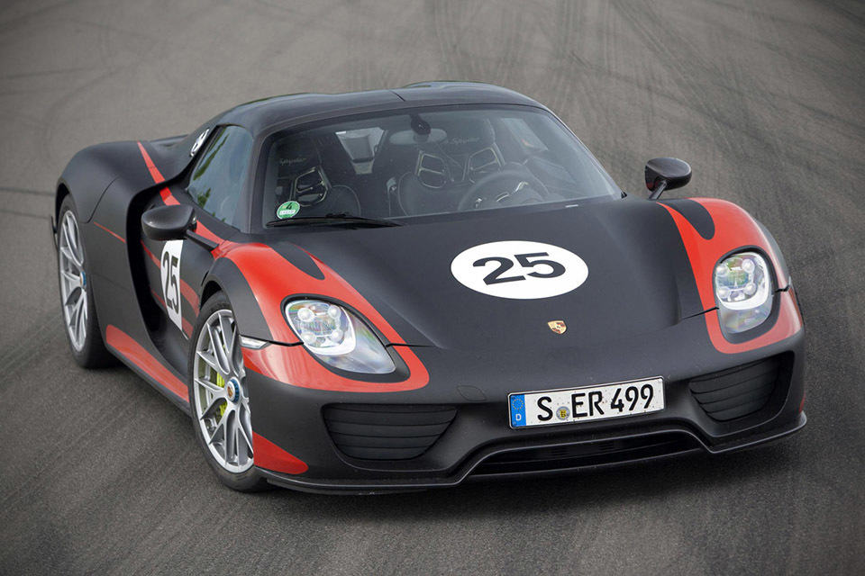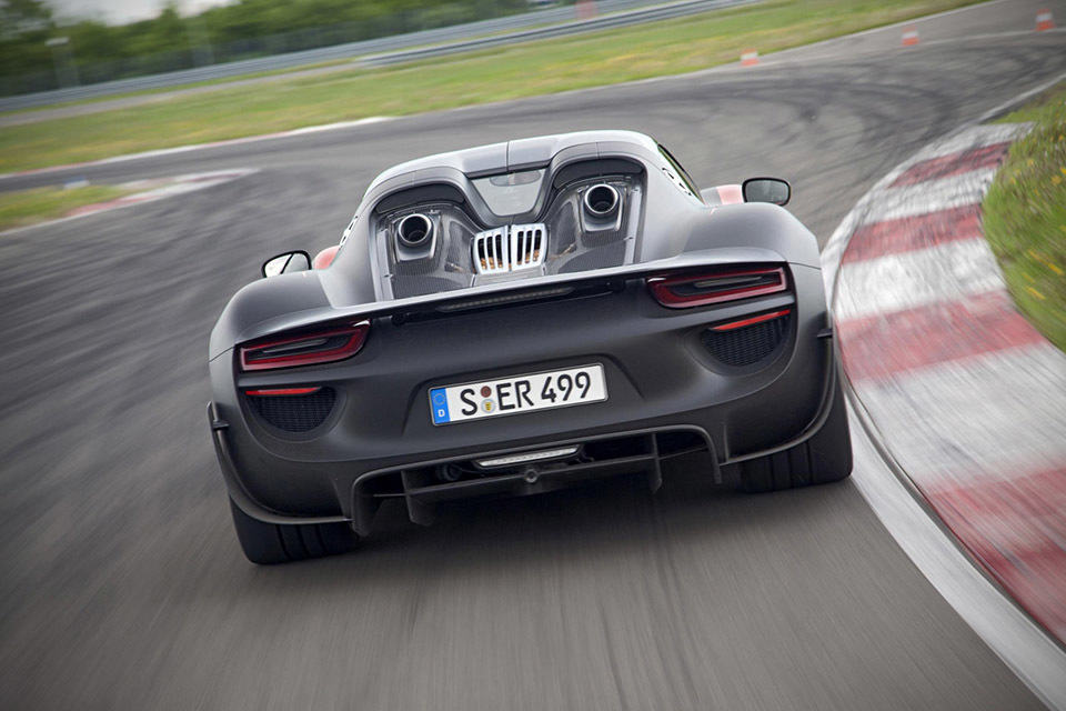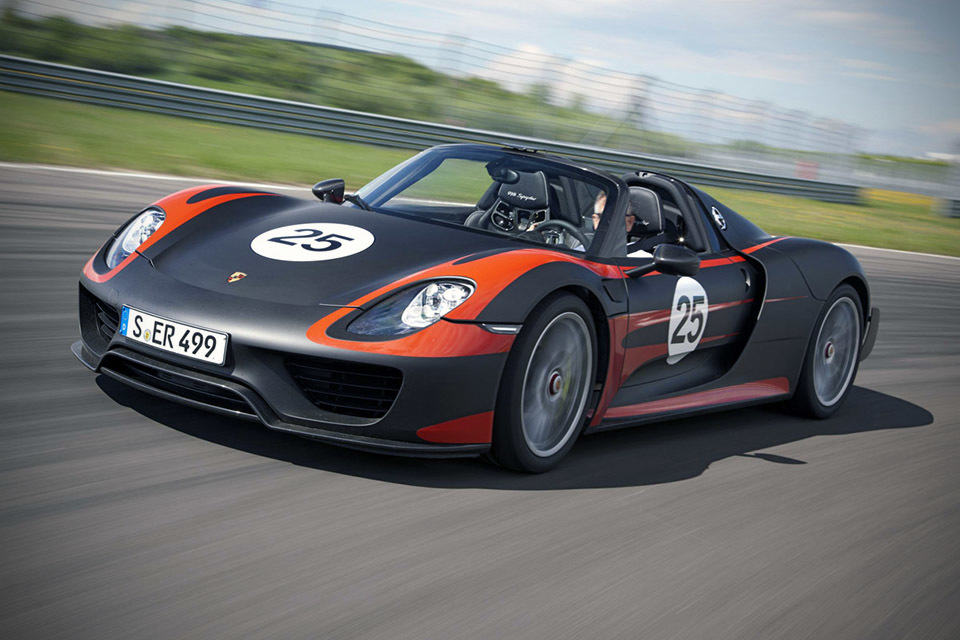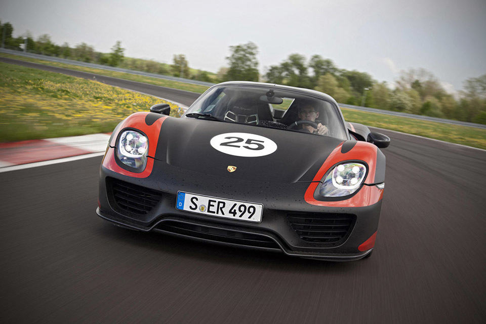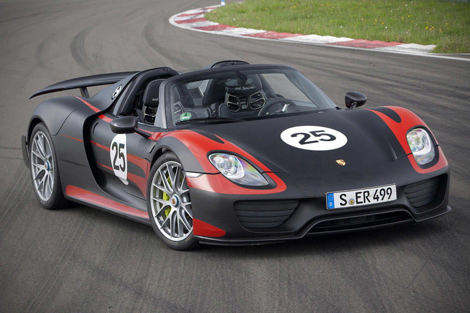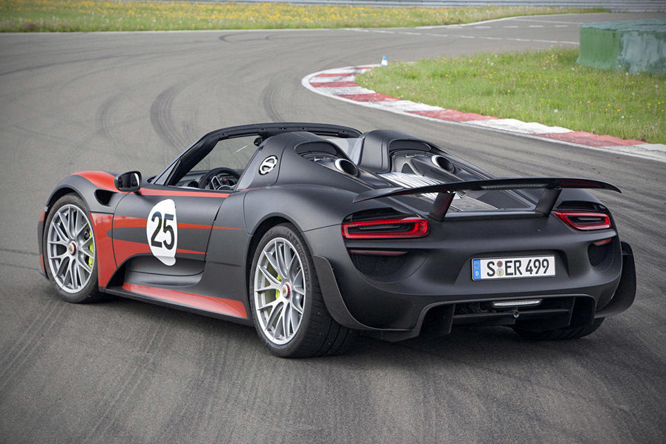 some experts have put it through the paces. we have heard about its pre-order program and we have also seen it in the awesome Martin Racing livery, but still, official specs are none available – until now. meet the 2015 Porsche 918 Spyder with the official specs (of which, some we already read and hear about) presented in a lengthy black and white PR release from the Stuttgart-based automaker. a destined two-seater Spyder, it is fitted with a 4.6-liter V8 mid-engine with 608 hp (453 kW) and 390 lb-ft (528 Nm) of torque, matched to a 154 hp hybrid module and a 127 hp electric motor, yielding a total of 887 horses and a mind-bending 940 lb-ft (1,273 Nm) of achievable torque. performance wise, you are looking at a hybrid that’s in the supercar domain with a top speed of over 211 mph (340 km/h) and a century sprint of just 2.8 seconds. on pure electric mode, this part eco supercar has about 18 miles (29 km) of guilt-free driving with speed peaking at 93 mph (150 km/h).