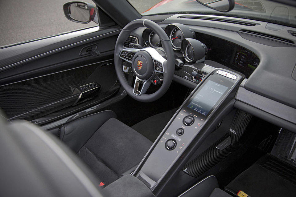 other features include a carbon fiber reinforced plastics (CFRP) monocoque body, two-piece Targa roof, fixed roll-over protection system, a seven-speed Doppelkupplungsgetriebe (PDK) gearbox, electro-mechanical power steering, individual rear wheel steering, high-performance hybrid brake system with adaptive recuperation, huge 16″ ceramic front brake discs and 15.4″ discs for the rear, and 20″ front wheels with 265/35 ZR 20 tires and 21″ rear wheels wrapped in massive 325/30 ZR 21 rubbers. if those features weren’t enough to interest in parting with $845,000 of your asset, there’s an Weissach package to further tempt you. the Weissach package includes special racing colors, a slew of carbon bits (including windscreen made out of visible carbon), partial Alcantara clad and carbon accented interior, a six-point seatbelt for both driver and passenger, a poorer sound insulation, lightweight magnesium wheels and it is 77 lbs less fat than the ‘regular’ 918 Spyder.