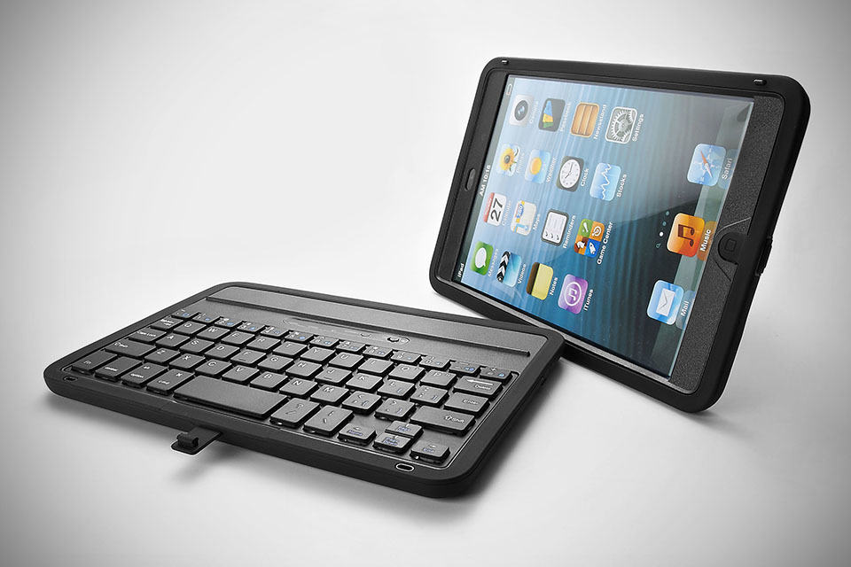 the case and the keyboard are physically connected via an aluminum kickstand on the case itself which also doubles as a kickstand for the iPad mini when not attached to the Bluetooth keyboard. when the two are clicked together, it sort of transforms your iPad mini into a ruggedized mini laptop which sounds pretty awesome. the aluminum kickstand is 360 degrees rotatable, thus affording you both landscape and portrait viewing angles for watching movies, doing FaceTime or whatever. though, extremely affordable as far as functionality is concerned, the Airbender Mini Rugged Keyboard Case for iPad mini not built specifically to any IP standards. just thought you should be aware of this. scroll down for a few more look and a product intro video.