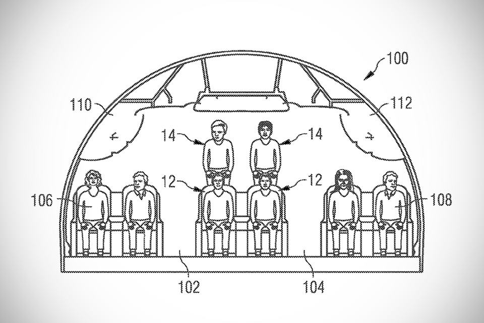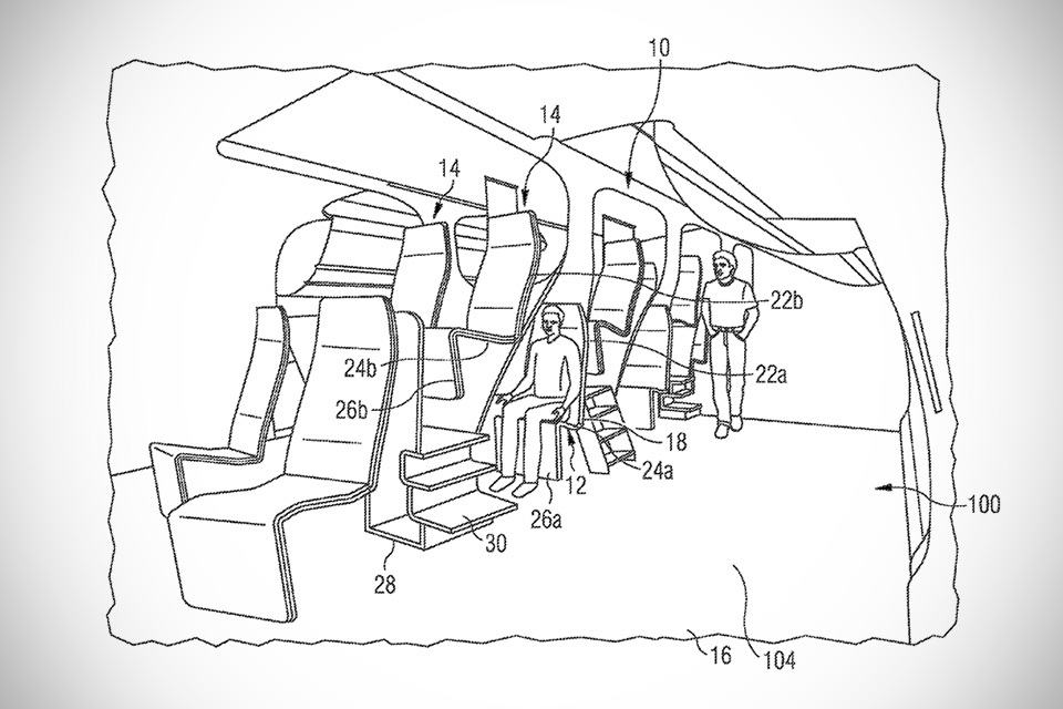 It is no secret that commercial jet makers have been wooing airlines with aircrafts that can carry more. But this latest seating arrangement patent filed by Airbus takes the cake as the most evil plan of all. Yes. We said ‘evil’ because if the present cramped seating arrangement in the economy class isn’t bad enough, Airbus wants to eliminate the overhead storage and use that same space for what they called ‘mezzanine’ seating. You know, ‘mezzanine’ as in a second story. So, yeah, Airbus is indeed proposing the literal stacking of passengers to, as the company puts it, “make optimum use of the available space in a passenger cabin.”
