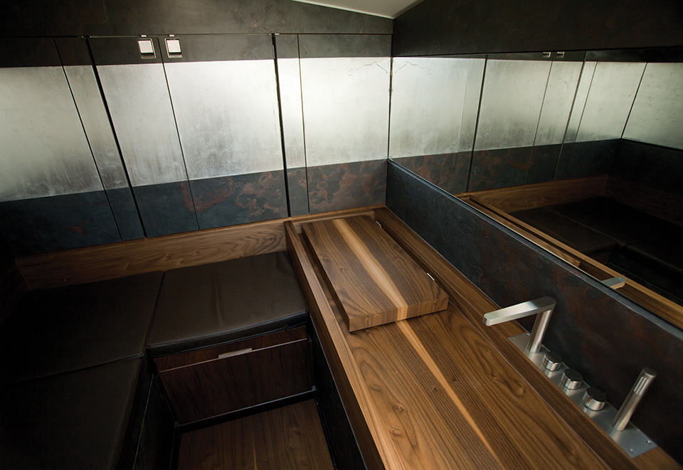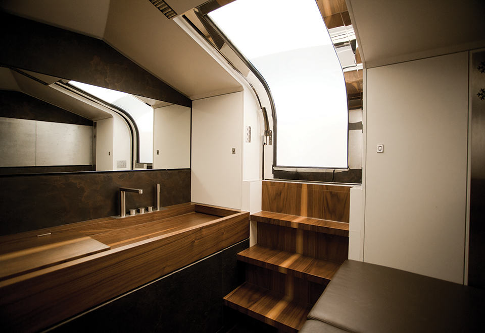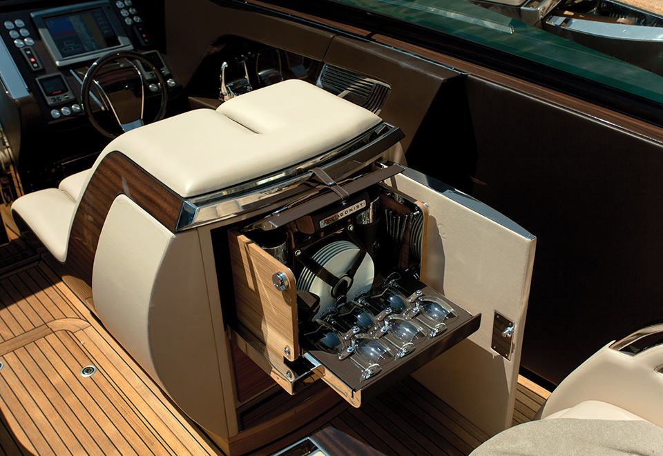 the large volume, fully-adjustable pilot’s chair is equipped with a small fridge, picnic box and a storage compartment. beneath the deck is a cosy air-conditioned home-like cabin spruced up by Boxmark Leather and features similar wood treatment that offers a welcome retreat for guests who just want to take break from the warm and breeze above. some other highlights include details like custom wooden stairs that most yacht overlooked or pay little attention to, Yanmar’s EOS (Easy Operating System) for ease of reining this water-borne beast, Xtreme Maritime leather that’s UV resistance, sea water, water and soil repellence (and resistance against suntan oil, if we may add), and the unmistakable beautiful craftsmanship of Art of Kinetik. honestly, if money is of no object, this is the watercraft that we would love to be on if we ever wanted to be on the water. the Antagonist Yacht by Art of Kinetik is slated to be launched this summer with pricing to be advised. sail past the jump for a gallery of the Antagonist.