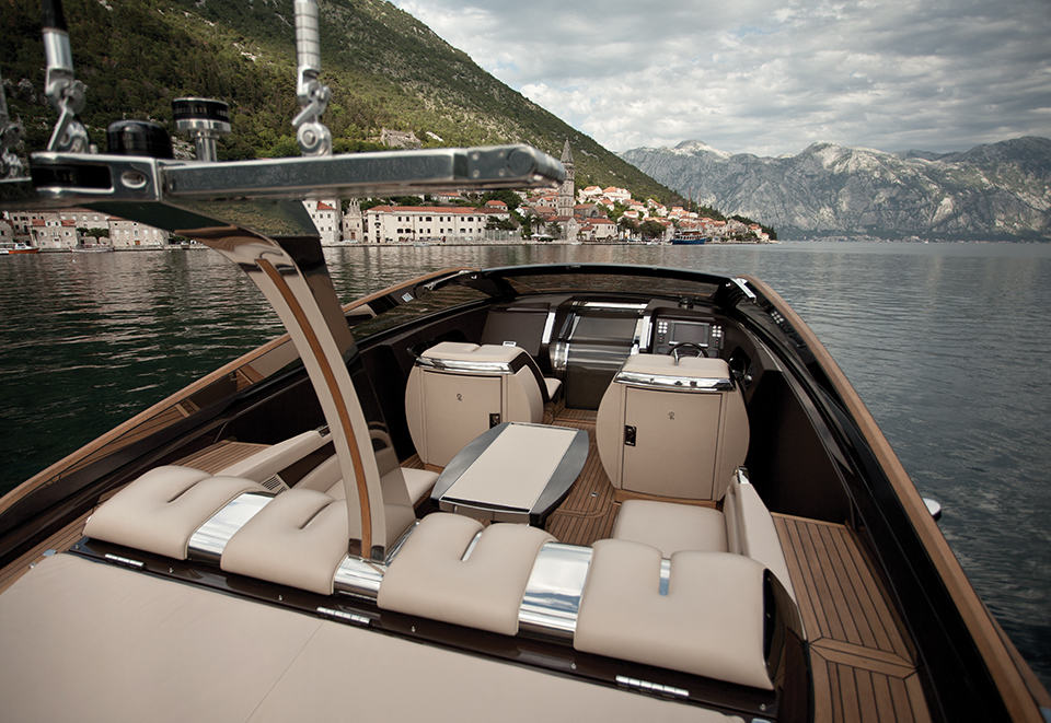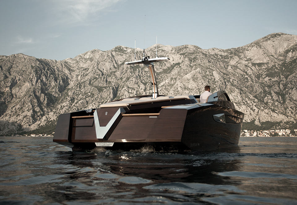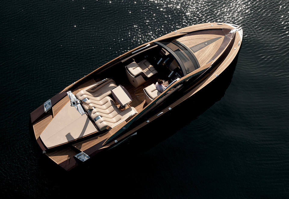 the Antagonist is billed by its maker, Art of Kinetik, as a luxury compact yacht which we disagree – we think it is more than that. it has amazing lines that would easily be accoladed as the finest crafted wood sculpture to ever cut through the water. to us, it is a speedboat/luxury yacht hybrid packaged in a size that’s agile and fun. this 37-foot open weekend cruiser is equipped with two 370 horsepower Yanmar 8LV-370 diesel units matched to two Yanmar ZT379 Sterndrive with SS props, together with its fine deep-V wooden hull, enables it to cut through the surface of the water at top speed of 42 knots, that’s a good 78 km/h or 48 mph in land terms. though compact by a yacht standard, it features a large open cockpit cum deck that beckons up to eight passengers to chill out around its multi-functional table while a sunbath area framed by teak walkways lead to the swimming platform, catering to those who love to absorb the warm of the sun or take a dip in the open water.