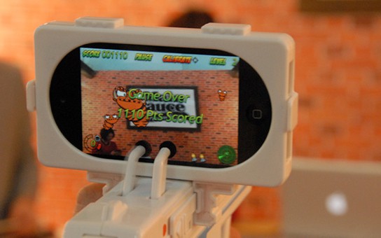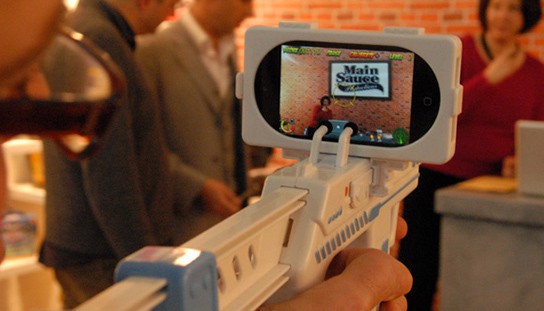 if you are bored with the lack of reality in shooter games on iPhone, then check the Appgun out. the plastic gun, when uses with the appropriate game, takes advantage of the augmented reality of the iPhone to let user immerse in a game of scoping out those nasty aliens.