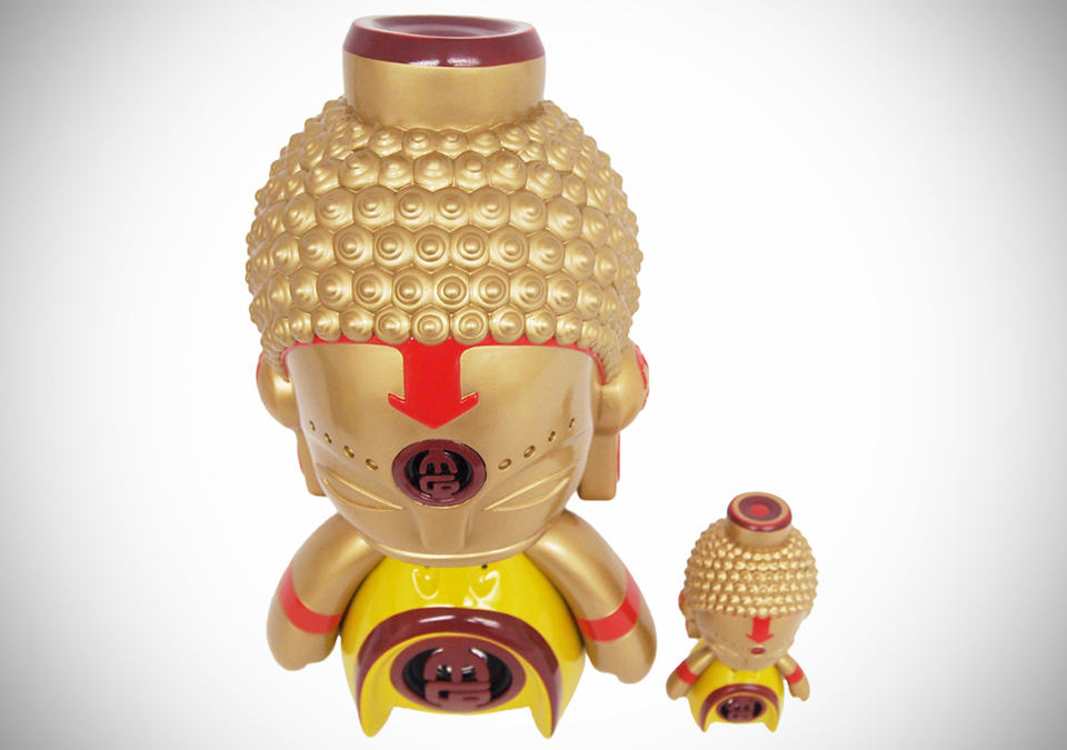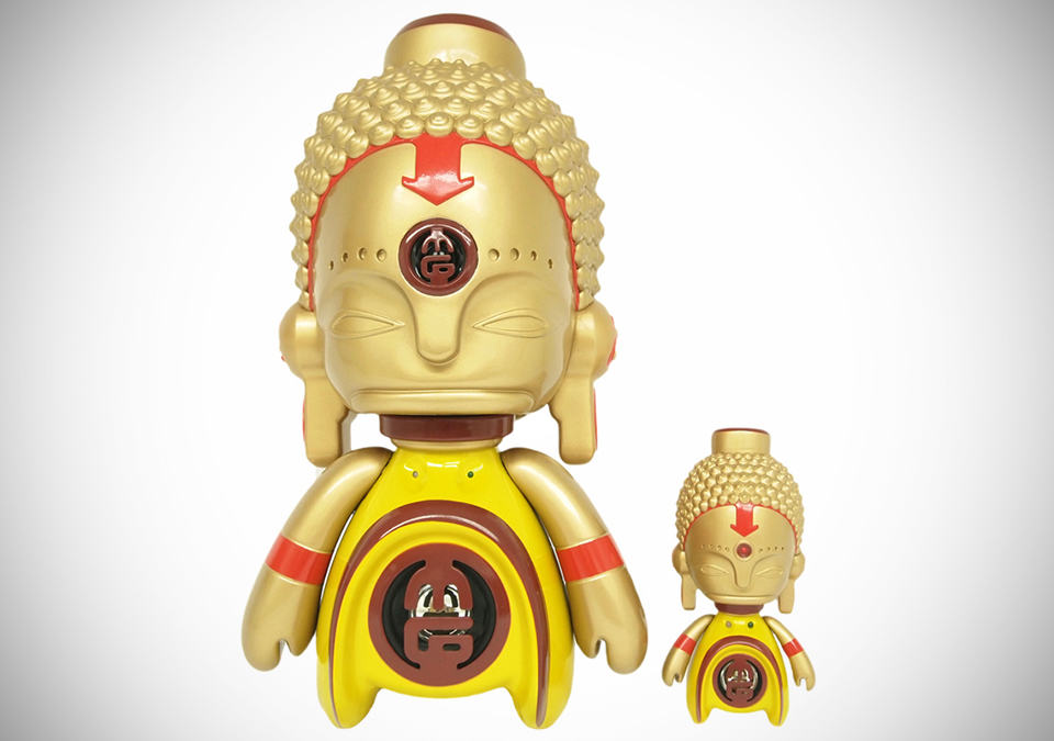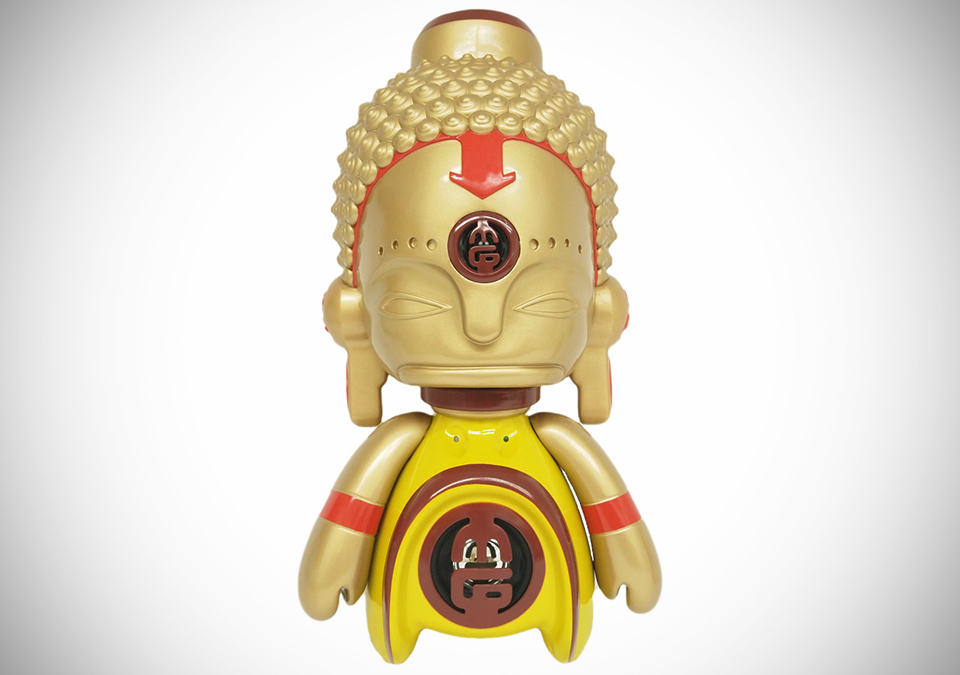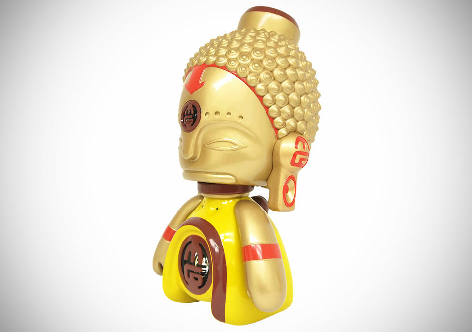there are speakers and there are cool speakers, and depending on your music inclination, sometime you’d trade off a little audiophile enjoyment for a speaker that’s aesthetically cooler or perhaps, for one that don’t even look like a speaker at all. the ASIA MiniGod Designer Vinyl Speaker is one such speaker if you are considering about listening out of the box, so to speak. a result of a collaboration between Texas-based designer Victor “Marka27” Quiñonez and BIC Plastics, the ASIA MiniGod Designer Vinyl Speaker comes in two sizes: a large 15-inch model and a pint-size 5.5-inch model. the former features a 4 ohm power speaker, a 10 ohm tweeter – both safely hidden behind an ABS-made protector, internal amplifier, on/off switch, LED lights, and a lithium battery pack that afford up to 2.5 hours of playback per charge. the smaller model features a dynamic driver tucked away behind an ABS speaker protector in the abdomen of this pint-size Buddha and power on/off switch with LED lights (guess where it is – no prize for guessing it right, though). true to its nature as a vinyl figure, both models sport a three points of articulation. obviously, quality of sound is not what these speakers tout about but it is more about the design factor and hence, sources will be connected via the good’ol mini jack cable to an 3.5mm audio jack. just think of it as a beautiful vinyl figurine that doubles as a speaker and not the other way round. the ASIA MiniGod Designer Vinyl Speaker can be yours for $39.99 and $159.99 for the 5.5-inch and 15-inch model, respectively. hit the jump for a few more look.