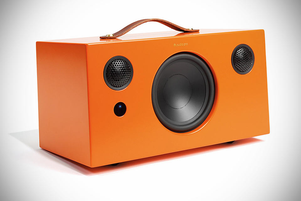 under the skin, it has 80W of amplified power and is blessed with advanced DSP processing technology for a natural, clean and room filling music experience. also built into the Addon T10 is a powered USB port for charging up your smartphone, or basically, any USB-powered mobile devices, though performance for the different devices in this aspect may varies. available in black or white, plus a special orange hue model, featuring a genuine leather handle secured with metal hardware. another impressive commitment to detail lies in the remote: all Audio Pro Addon T10 Wireless Speaker comes with a remote control milled out of single block of aluminum – essentially making this often overlooked accessory, an unibody remote control. available now across Europe for €350 (about US$475). click past the jump for a few more look.