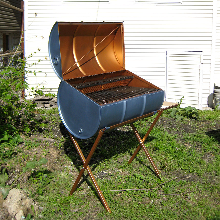 ever since the invention of industrial barrel, people has found many other use for it besides dumping oil and chemical in it. among those different uses, turning it into a BBQ grill, along with using it as a fire pit, rank among the most popular alternative usages. however, unless you have the required skills and handy tools, you probably can’t create one for yourself. luckily, there’s the BBQ for Men by lhooq to fill that void. with a price tag of $950, you will score yourself an industrial barrel repurposed into a stylish BBQ grill sporting a cool royal blue paint job on the outside and a brass hue on the inside. the easy to open top opens up to a two-tiered grill catering to food of different heating requirements and it even has a side tray for your next-up food or BBQ tongs. it comes with removable legs for ease of storage. though not pictured, this BBQ grill actually comes with a mahogany wood handle and the all-important built-in thermometer on the lid, and lid itself features a full clearance on the inside and a built-in bungs facilitate the drawing of air to keep the fire going. available in high temperature paint or power coated finish (+ $250) with delivery date between two to six weeks.