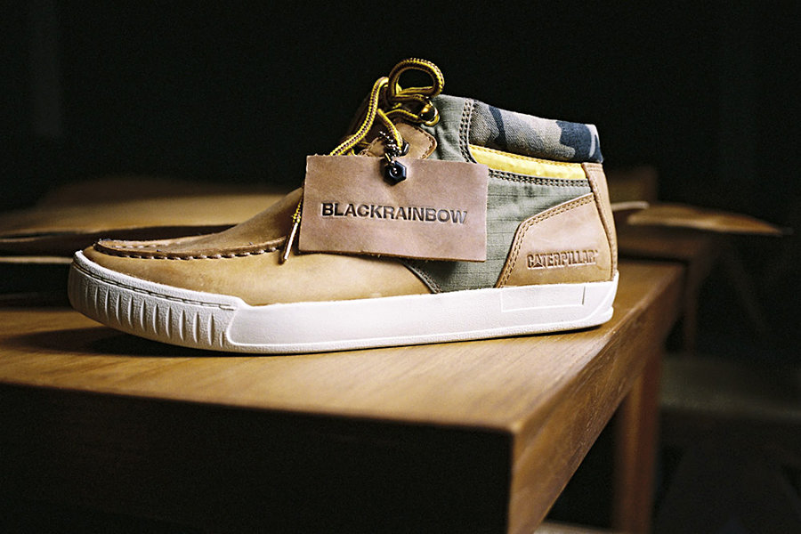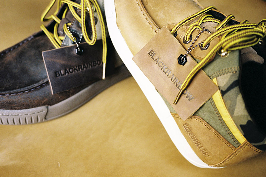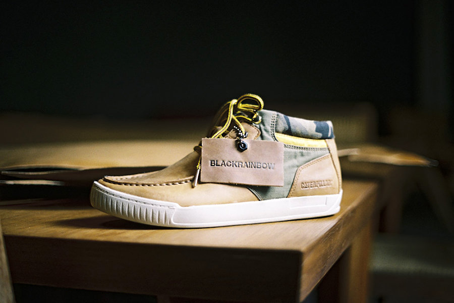 let’s face it. even men can’t get enough of good shoes, thanks to the endless stream of beautifully designed shoes like these CAT x BlackRainbow Sneakers. a collaboration between French label BKRW and American brand Caterpillar, the CAT x BlackRainbow Sneaker is not just a collaboration of ‘slapping-on-each-other-logos-on-to-the-product’ routine. it was designed from the ground up, drawing inspiration from CAT’s American culture and peppering it with a French twist. one look, you will know that’s a CAT footwear that can withstand more than just a kick on the dirt but yet, it look fashionably stunning with the combination streamlined premium leather, camo print ripstop material, and signature yellow gold laces. some might refer it as the best of both worlds: the world of sneaker-culture and workwear. i’d be lying to say that i am not totally sold. the BlackRainbow x CAT Shoes is slated to hit the stores sometime in December, though there’s no word on their pricing. join me after the break for more images of these awesome collab shoes.