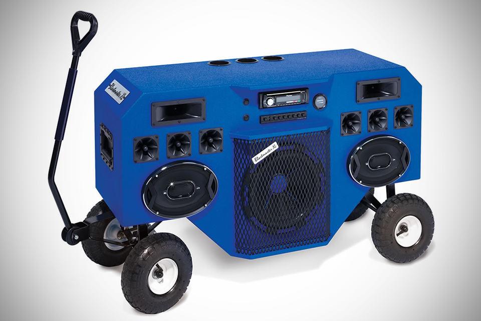 let’s face it: hugging a boombox over your shoulder is so passe. these days a tiny Bluetooth speaker could do the same job without you having to suffer from aching shoulder at the end of the day. however, if you are looking to pump up your mobile parties in a really big way (and we do mean really big), then you really got to check out the Blastmaster XL by Mobile Fidelity Inc. equipped with a set of go-anywhere 10″ pneumatic tires and a steerable wagon handle, this 2,000 watts mobile sound beast lets you pump up your favorite tunes anytime, anywhere. audio reproduction duty is undertaken by eight PA-quality Piezo horn tweeters, a pair of 6 by 9 mid-range speakers, and a 12″ dual-voice coil subwoofer with dedicated crossover – all with its own dedicated amplifier, while a four-band equalizer offers precise control over the audio output. sources range from modern day Bluetooth connectivity and USB port to 3.5mm audio input jack to older media such as a CD player with AM/FM tuner. yes – CD player – just so you know that your stash of CD has not gone to waste and from the look of it, the CD and radio functionality is in fact coming from an in-car head unit. is it not? anyway, staying true to its mobile status, the Blastmaster XL is juiced by a rechargeable 12-volt marine battery that is good for up to 20 hours partying audio. rounding up the party package are drink holders, bottle opener, and a flagpole mount just so that everyone know where your allegiance lies. you can get your Blastmaster XL by Mobile Fidelity Inc. for a bank-breaking amount of $4,000.