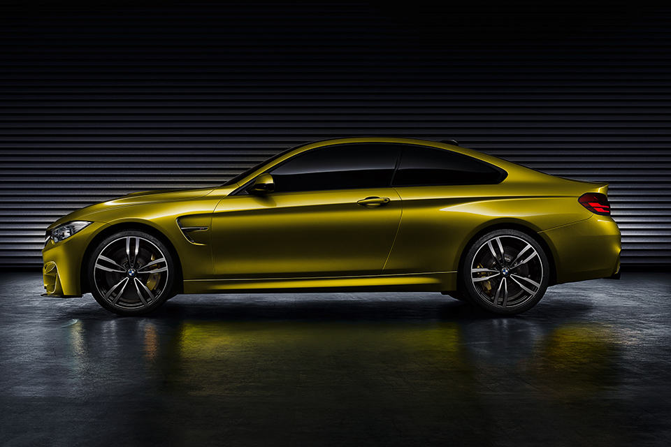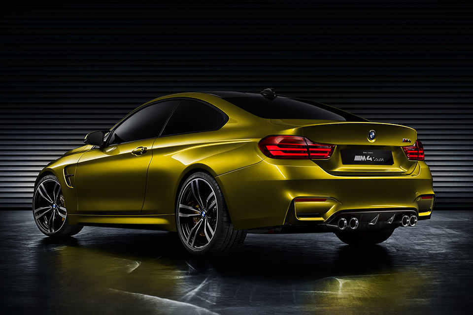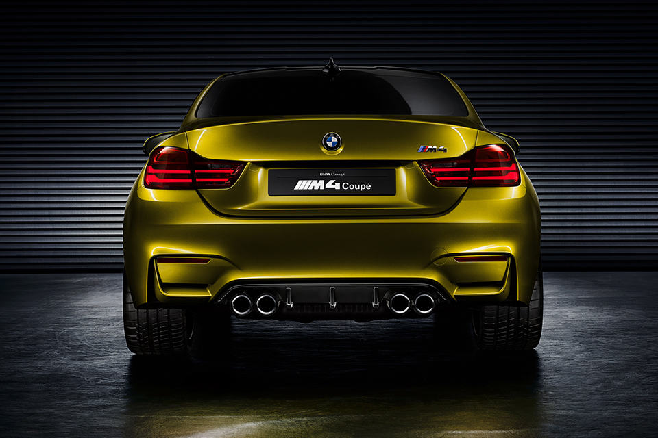 other known features include an integrated rear spoiler lip on the trunk for optimum downforce, side M gills with Air Breather that works in sync with the front air inlets to channel air for cooling the wheel arches, bicolored 20-inch M light alloys rolling stocks (in the familiar M double spoke design), M Carbon ceramic brakes, flared wheel arches, and twin tailpipes, a characteristic M feature, wrapped in carbon fiber. well, that’s all we know about this beautiful ride for now – everything else would have to wait and see. in the mean time we have prepared a small image gallery of the Concept M4 Coupe, along with a short clip, for your visual pleasure, which you can find after the break.