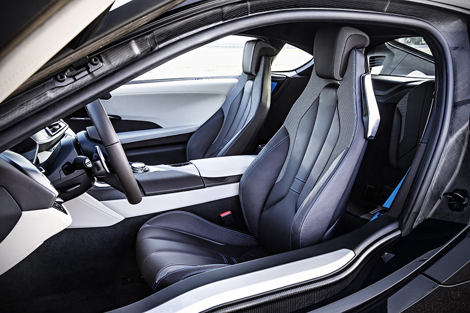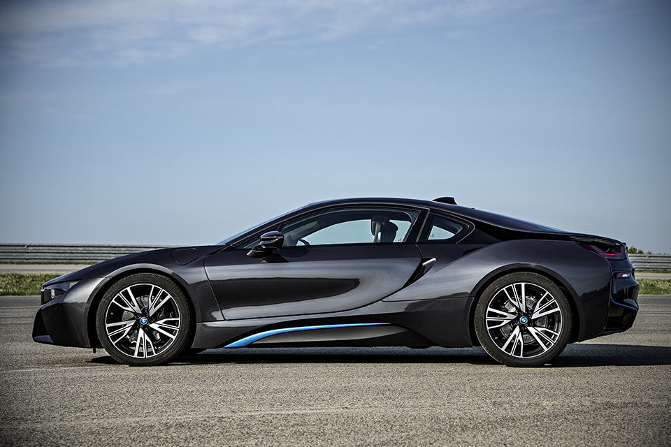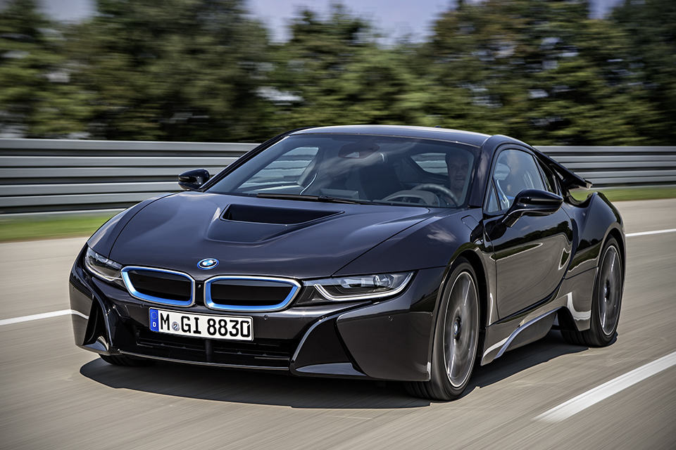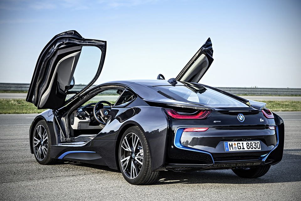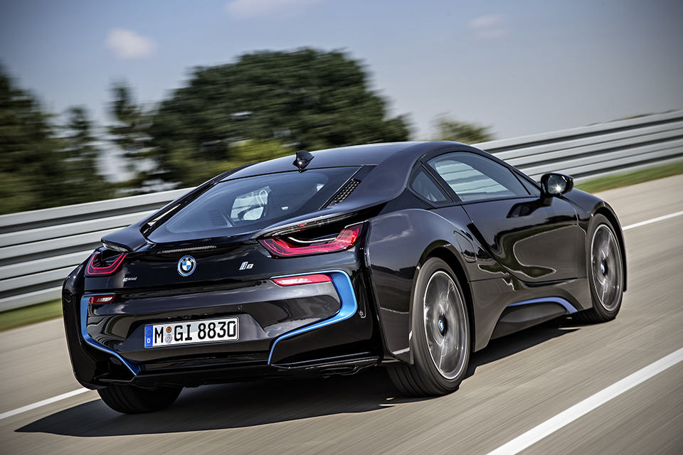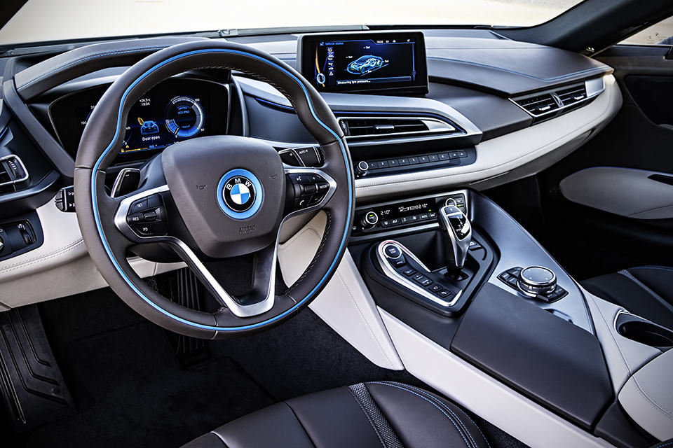 the driving force behind this uber sporty coupe is a 1.5-liter turbocharged, three-pod unit that turns out a healthy 231 horses (170 kW) and 320 Nm (236 lb-ft) of torque; sent to the rear wheels via a six-speed automatic gearbox. joining the IC engine is an electric motor with 131 hp (96 kW) and 250 Nm (184 lb-ft) of torque, channeled to the front wheels through a two-stage automatic transmission – thereby blessing it with an unique all-wheel drive system. all told, total system power comes in at 362 hp (266 kW) with 520 Nm (420 lb-ft) of torque, which allows the 1,490 kilograms (3,285 lbs) i8 to make the century sprint in just 4.4 seconds – a figure that clearly puts the vehicle in the high-performance sports car domain. the best part of the equation is, it does all that with a fuel consumption of 2.5 liters per 100 km or 113 US mpg. it can do 35 kilometers (22 miles) on pure electric power with a stop speed of 120 km/h (75 mph).