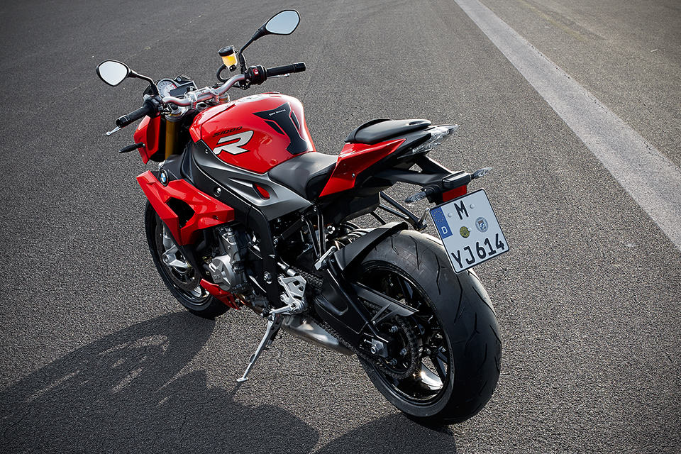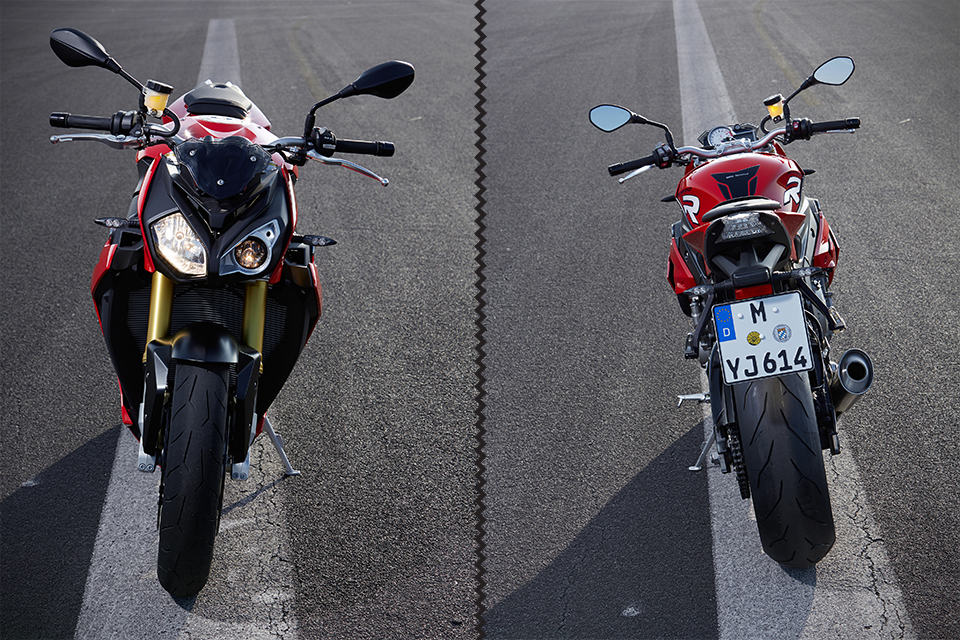 having brute grunt like the S 1000 RR may not be everyone’s cup of English Breakfast, especially when it use as a daily runner, and this is the very reason why there’s the BMW S 1000 R Superbike, a “pared down” version of the RR (hence the lone ‘R’), but no less potent. actually, it is a little less on the brute force, but still pretty impressive by any two-wheel standards. the Motorrad folks took the 999cc four-pod unit of the RR, tinkle with the cylinder head ducts design, modified the cam profiles and engine management system and more, and the result is a roadster with a maximum power of 160 hp (118 kW, or about 33 hp shy of the RR) at just 11,000 rpm and peak torque of 112 Nm (83 lb-ft) at 9,250 rpm. all those power and torque are used to push along a kerb weight of just 207 kg (456 lbs).