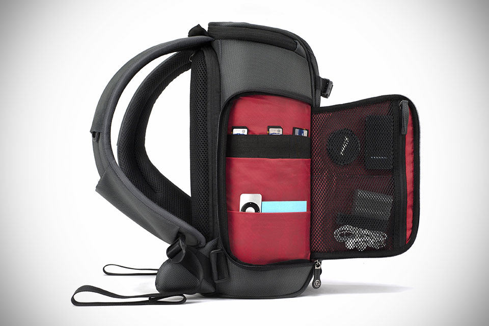 spur of the moment type photographers will surely appreciate what the new Booq Python Slimpack Camera Backpack has to offer. for starter, it looks every bit of awesome and despite the compact form, it managed to pack a series of pockets and a main camera compartment with configurable plush red padded interior that not only protects your gears, but also makes your predominantly black gears stand out and thus, facilitates easy retrieval. seriously, black on black is no fun, especially true when light source is not favorable. the bag is totally capable of swallowing up up to two DSLRs, up to four mid-size lenses, one large zoom lens, a tripod, plus a 10-inch class tablet such as the iPad (without case) – and thanks to the aforementioned generously padded divider, how you are going to use and organize your photography gears is entirely up to you.