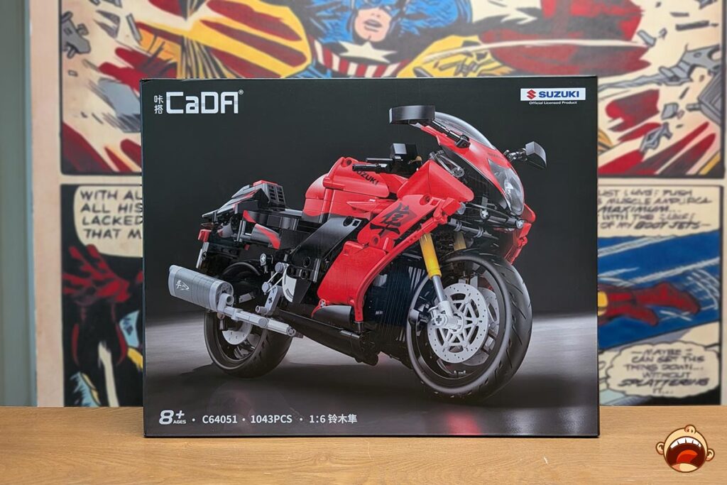 Like CaDA’s Master series, it comes in a lift-top box featuring a beautiful, glossy print of the Hayabusa model, along with the requisite information, the official Suzuki logo, an image of the actual motorcycle, a couple of images of the complete model, the key features of the set, and the obligatory product info in English.