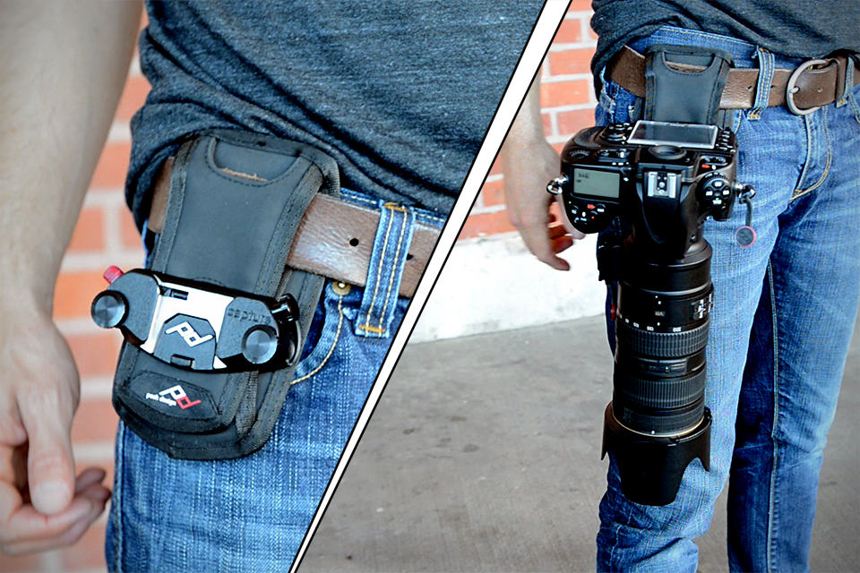 there are couple of ways which you could carry your DSLR. one being in the bag, which makes it not so quickly accessible and two, using a neck strap which tends to hinder your movements as the camera swings about as you move. the solution? the Capture V2 Camera Clip System. as the product name implies, this is the second generation of the first highly successful Capture camera clip system by Peak Design introduced two years ago and what makes this new version awesome is, improvements have been made based on requests and suggestions from over 50,000 active customers. for the uninitiated, Capture is a compact aluminum clip that allows photographers to carry their cameras securely on any backpack strap, belt or bag. a quick-release mechanism allows you to draw the camera swiftly, like a dueling cowboy, to take a shot, and rapidly and securely lock the camera back in place single-handedly.