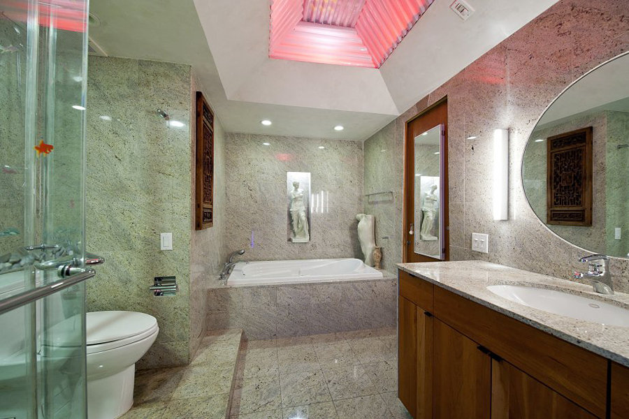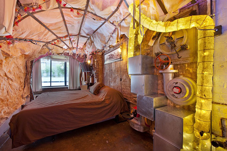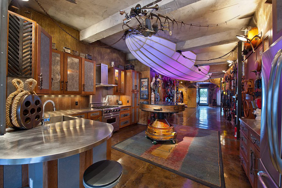 is there a relation between steampunk and a Zeppelin? probably nothing unless you take Sky Captain and the World of Tomorrow a little too seriously. nevertheless, that doesn’t stop a 32-foot long Zeppelin programmable LED lighting system from infiltrating this steampunk-inspired apartment at 120 West 29th Street, 2. the huge LED light system may be the center of attraction of this 1,800 square foot one-bedroom apartment but adorning the apartment is a huge assortment of gears, nautical accessories, parachutes, as well as various vintage (and no doubt brassy) machineries that gives this unique apartment the unmistakable steampunk flavor – or should I say, a very sea-theme steampunk interior décor? the whole sea-inspiration kicks off right at the front entry with its submarine style door that comes complete with a key pad entry system and a working pothole. other features include a kitchen furnished with high-end appliances and stainless steel countertops, oversized glass sliding door that opens up to a 500 square-foot terrace and two bathrooms. lucky for those with (extremely) deep pockets, this particular apartment is still up for sale for a cool $1,750,000. wow. we know that amount is way beyond us (being house-poor is definitely not in our life’s agenda) but we certainly appreciate the beauty and hence, the least we could do is to savor a few images of this unique example in the gallery after the break.