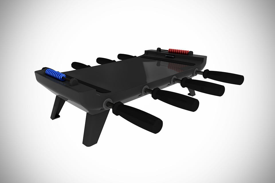 a pinball gamer controller for iPad seems like a no-brainer but a foosball table for iPad? really? is it even feasible? apparently it is, as proven by New Potato Technologies’s Classic Match Foosball Table for iPad. you heard that right, miniature foosball table contraption designed for the large iPad and though small, it is not lacking in features. the ‘table’ features eight functional two-axis control bars with elastomer handles, scoring markers on each end, a rugged construction realistic table with foldable legs for ease of transportation and storage, ‘foos’ buttons on both sides to launch ball into play and a battery-less design and a dock for charging and syncing your iPad without removing it from the ‘table’. the ‘table’ supports up to four players but we are wary how you could cram four people around this cute foosball table. though we are mindful that foosball can be quite an aggressive game and cramming four dude around it doesn’t help at all. so it is probably best to stick with two. it all sounds fun to us except that being a digital game, the playing area seems a little too ‘flat out’ and speaking of which, we think we are so needing holographic technology on iPad right now. anyway, the Classic Match Foosball Table for iPad is available now for $99.99 and as for the app, it will be free. makes sense, since your already put down a good 100 bucks on it.