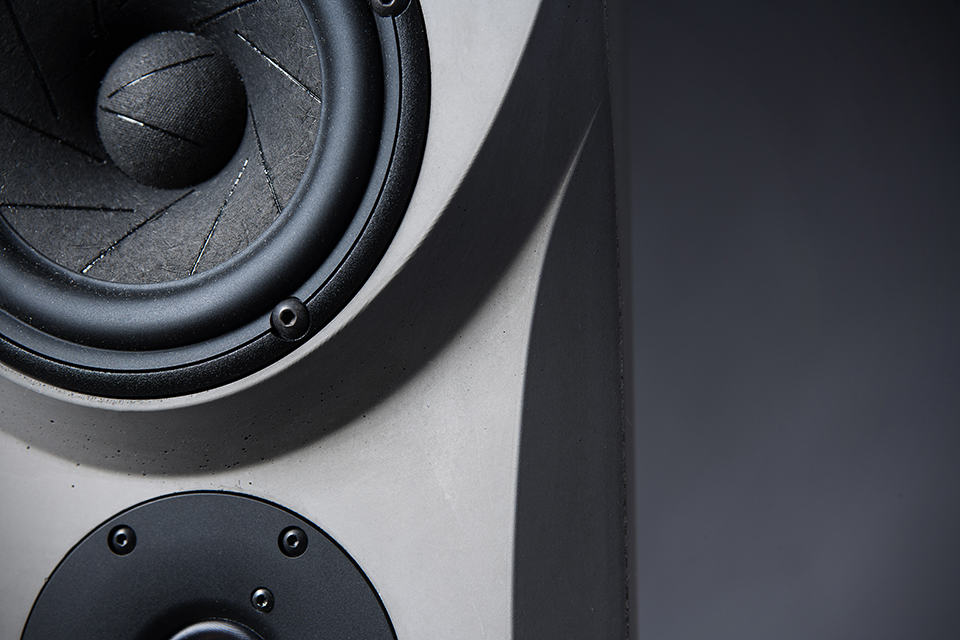 concrete is not exactly a luxury material, but it is nevertheless synonymous with manliness and have an unexplainable raw appeal. concrete never stops curing – it grows stronger as time passes and provides a strong structure that doesn’t vibrate unless there’s some artillery shelling going around. thus, it becomes the logical material of choice for the housing of the German-made Concrete Audio N1 Concrete Loudspeakers. being concrete means not only there will be no resonance to distort the sound, it is also hefty enough as a tranquil base. using a special high-strength concrete, the N1 enclosure is cast out as one piece with no joints or whatsoever. on the inside, this monolithic structure is lined with different sound-dampening materials to eliminate reflections which rounds up the acoustic department of this heavy weight audiophile loudspeakers.