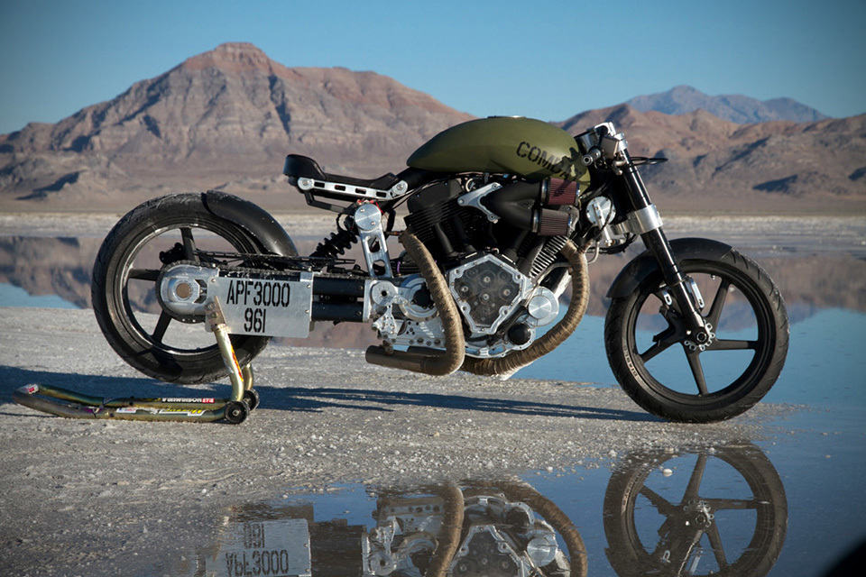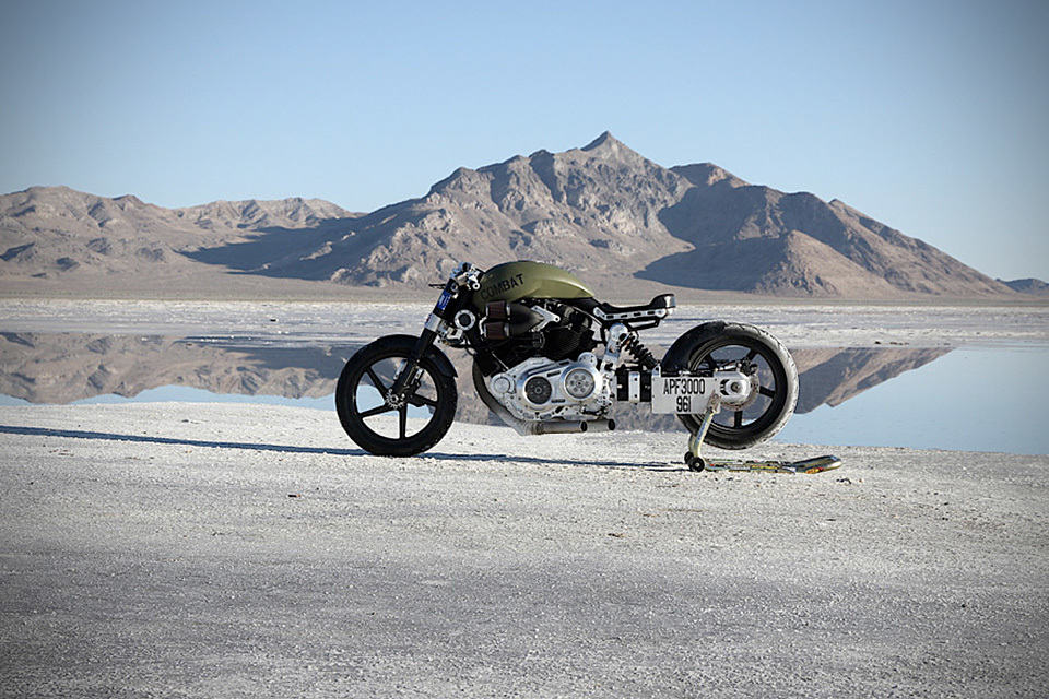 do you have what it takes to rocket to 277 km/h (172.2 mph) on a two-wheeler? if yes is the answer than this very limited Confederate X132 Hellcat Combat Motorcycle is the bike for you. well, not that you should be going that fast on a regular road other than the Salt Flats and also, not that you will be getting the actual bike that broke the record there but you will be snagging an identical example. with the speed set on August 29 this year, the X132 Hellcat Combat is officially the world’s fastest unfired big block American V-twin motorcycle. for $72,000 you will be owning one of 36 handcrafted examples that is fitted with a 2,163cc fuel injected V-twin that pumps out 160 horses and 160 foot pounds of torque and features Combat Optimized 5-Speed transmission, Machined 6061 aircraft-grade aluminum case unitized case, 120 wall hard steel backbone and down tube, custom suspension, 17-inch BlackStone Tek Carbon Fiber wheels front and back wrapped in Pirelli Diablo Rosso rubbers, dual Beringer four-pod brakes up front and single 2-pod Brembo for the rear, LED lightings and a full suite of instrumentation including digital speed readout. all told, this guerilla tips the scale at just 222 kilograms (490 pounds) and we did mentioned there are only 36 of these world wide, didn’t we? certainly not enough to go around which is why you should act fast if you want one. a couple videos of the Confederate X132 Hellcat Combat Motorcycle record breaking moments after the break.