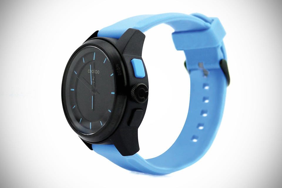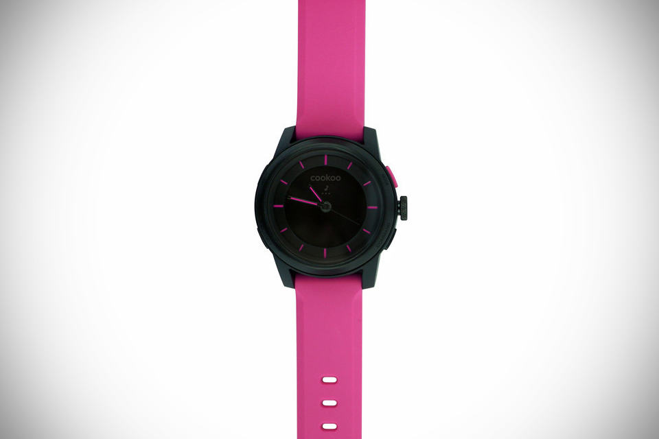 connected to your iPhone or iPad (iOS 5 and above) via Bluetooth 4.0, it include smartwatch functionalities such as a customizable COMMAND button for one-button Facebook check-in, location tagging, remote trigger camera, et cetera, low battery level alert, device out-of-range alert, phone location at the press of a button. as a watch, it has the said Japanese movement, scratch-resistant mineral crystal, water resistant up to 50 meters (5 ATM or about 164 feet), and despite its dress watch-like appearance, it is designed to be shock resistant, though to what extend, we are not quite sure. the COOKOO Analog Smartwatch is available in a number of colorways, including black on black, black on blue, silver on black, black on pink, silver on white, as well as a limited edition green on black. the COOKOO Analog Smartwatch can be yours for $129.99 ea.