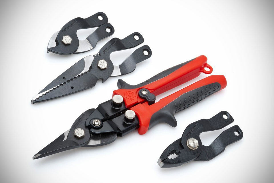 the blades included with the CMTS4 include a standard multi-purpose blade suitable for chopping up cardboard, rope, shingles, vinyl and plastics, a straight blade for cutting up ductwork, aluminum siding and even sheet metal, a cable cutter for trimming and stripping wires, and last but not least, a plier head that does, well, what a plier does. ok, perhaps, it is more of a three-in-one-cutter-plus-a-plucker or sort, and not so much of a four-in-one-cutter, still, it is nevertheless an awesome tool.