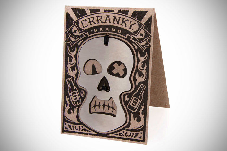 skull, despite its grim image, is a sign of manliness and so are beers. therefore, fusing a skull design into beer essentials such as a bottle opener is just about the manliest thing to do. and that is exactly what Crranky Brand did with the Crranky Skull Bottle Opener. btw, Crranky is not a typo. it is just spelt that way and believe us, this skull bottle opener is anything but cranky, unless you consider doubling as a keychain is (we reiterate: it is not). all told, the Crranky Skull Bottle Opener is chic cool, it is strong enough to do its job i.e. popping open bottles, it is slim enough for you slip inside your wallet and carry with you all the time, and it has a crazy cool, chipboard carved woodblock package art that would make any Hell’s Angel fanatics go gaga (disclaimer: stereotyping isn’t one of our intention here). included with this 16 gauge stainless steel skull bottle opener is a 6″ steel cable for keychain duty, or basically loop to anywhere that would make your feel proud. we love idea of steel cable in place of plain ring, which adds to its rugged manliness. last but not least, it is 100 percent crafted in the U.S.A and it will cost you just $19.99 to own. seriously, we can’t see what’s not to love about Crranky. check out a few more images after the break.
