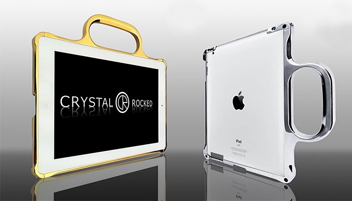 we have seen many blinged up iPhone offered by numerous firms, so it’s high time that iPad 2 gets its fair share of such luxury treatment. Crystal Rocked, the master of all things bling-bling has announced the availability of a couple of blinged up Bumper for iPad 2 in the form of 24-carat gold plated and chrome plated. each bumper is dipped in the gold or chrome plating process four times, ensuring a good gold or chrome plating and thickness. a handle form part of the bumper that allows for easy toting of your iPad 2 around. the bumper is crafted from aircraft-grade aluminum that features cutouts for access to all buttons and controls on your iPad 2. in short, this bumper offers not just protection but also the opulent look that you may be longing for your shiny gadget. the Crystal Rocked iPad 2 24ct Gold Bumper and Chrome Bumper are available now via Crystal Rocked web store and will set you back at £530 (about US$850) a pop. a couple more look of this duo after the break.