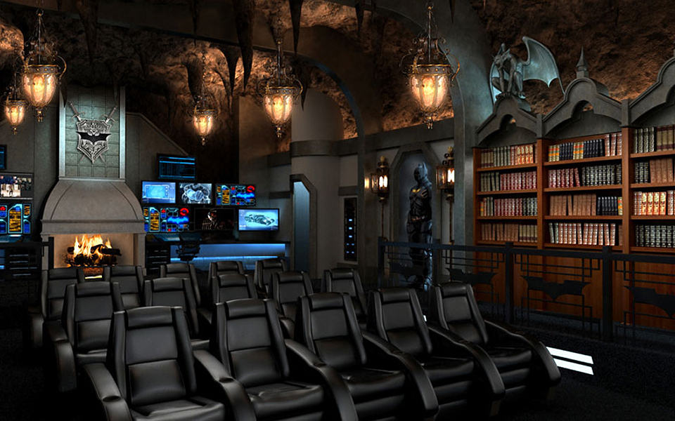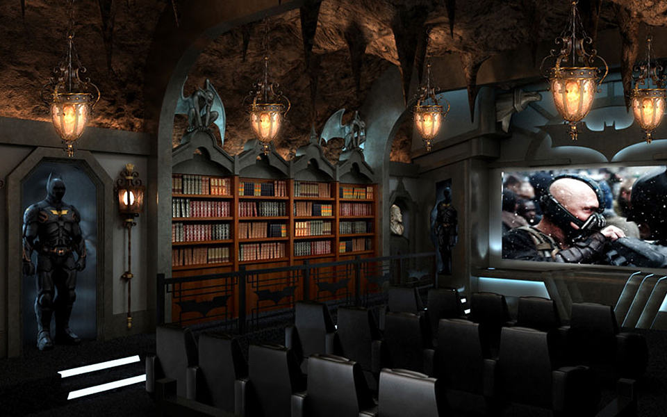 still fantasizing about taking on the role of the cape crusader? the truth is, it can never happen. sad fact, indeed but if you have like $2 million to splurge, you could turn your seizable spare room into a Dark Knight themed home theater. according to the brainchild behind this awesome custom home theater setup, Elite Home Theater Seating, this particular gothic setup “fuse together the cozy elements of Wayne Manor, with the Art Deco styling of Gotham City” – a statement that we can easily see why. so what do expect when you drop two million greens into this? how about a secret chamber for the Dark Knight’s ride, Batmobile aka “Tumbler” facing a faux tunnel exit, concealed by classic-styled bookcases complete with books? of course, that’s not the only goodies. there is also a set of 15 Model B1 seats with armrests for audience, a working fireplace, gothic-style overhead lamps with cavernous ceiling as their background, and topped with almost realistic “Batcomputer” which Batman uses for his vigilante crime fighting purpose. this particular example is being built in a private home located in Greenwich, Connecticut and occupies a 12,000 square foot of space. other Bat-ly treats include a 180-inch film screen, six Batsuits dotting the room, winged gargoyles for the added gothic touch, private cylindrical stainless steel elevator (otherwise known as lift), and a huge backlit bat logo located prominently above the large screen. it’s a custom job, so we would think almost anything is possible as long as you have a big fat account and resides in the U.S. apparently, this particular example is still work in progress with expected completion sometime in November 2012. hit the jump for a few more, tell us you are not impressed.
