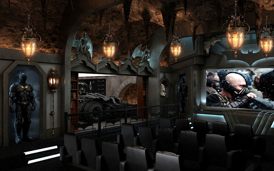 still fantasizing about taking on the role of the cape crusader? the truth is, it can never happen. sad fact, indeed but if you have like $2 million to splurge, you could turn your seizable spare room into a Dark Knight themed home theater. according to the brainchild behind this awesome custom home theater setup, Elite Home Theater Seating, this particular gothic setup “fuse together the cozy elements of Wayne Manor, with the Art Deco styling of Gotham City” – a statement that we can easily see why. so what do expect when you drop two million greens into this? how about a secret chamber for the Dark Knight’s ride, Batmobile aka “Tumbler” facing a faux tunnel exit, concealed by classic-styled bookcases complete with books? of course, that’s not the only goodies. there is also a set of 15 Model B1 seats with armrests for audience, a working fireplace, gothic-style overhead lamps with cavernous ceiling as their background, and topped with almost realistic “Batcomputer” which Batman uses for his vigilante crime fighting purpose. this particular example is being built in a private home located in Greenwich, Connecticut and occupies a 12,000 square foot of space. other Bat-ly treats include a 180-inch film screen, six Batsuits dotting the room, winged gargoyles for the added gothic touch, private cylindrical stainless steel elevator (otherwise known as lift), and a huge backlit bat logo located prominently above the large screen. it’s a custom job, so we would think almost anything is possible as long as you have a big fat account and resides in the U.S. apparently, this particular example is still work in progress with expected completion sometime in November 2012. hit the jump for a few more, tell us you are not impressed.