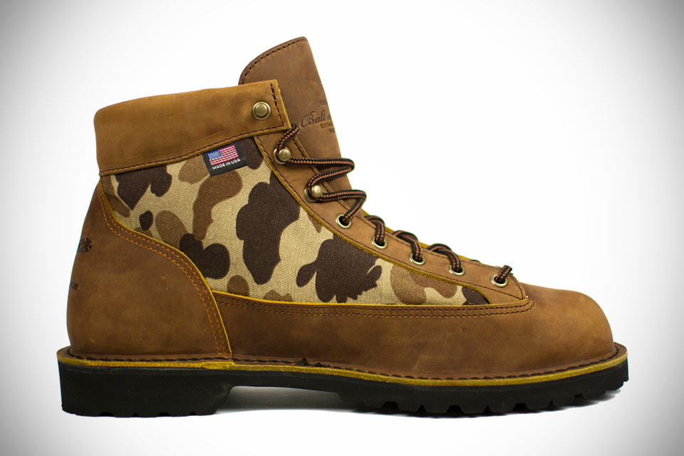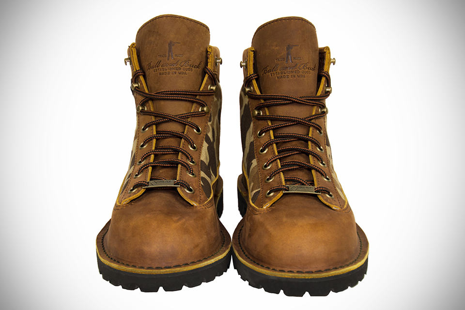 for those who appreciate what some elements of camouflage pattern can do to your kicks, you might want to check out the Danner x Ball and Buck Boots – especially if kicking around in boots is right up your alley. based on the iconic Danner Light, this special collaboration sees this pair of rugged boots receiving a wax and oil saturated pull up leather construction with Buck and Ball’s signature camo pattern in 10oz cotton duck cloth accentuating the flanks, along with more subtle details like blaze orange heel stitching, antique brass hardware and debossed branding of the two companies on the tongue and the heel completes the rugged look. Gumlite soles by Vibram provides the comfort suitable for everyday wear, while added GORE-TEX practical for outdoor adventures such as hiking or hunting.