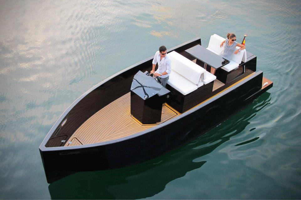 you know the feeling of how much you love something the moment you lay your eyes on them but can’t really explain the sudden affection? the DeAntonio Yachts D23 Speedboat is one such object that invoke that sacred feeling. don’t ask us why. it just happens. then again, it could be its unconventional, sharp and almost toy-like appearance that bags our attention and makes us put the D23 in our ‘want it now list’. we are very certain that it is not the hidden outboard Suzuki motor with 115 horses that draws us to it, though we can’t deny that feature is aesthetically appealing to some extend. this minimalist watercraft is constructed from fiberglass and polyester resin with the deck finished in ever-so-classy teak, along with several details in carbon fiber, especially designed by Spanish design house Ubica. this 7-meter (22-foot) boat can ferry up to six folks and comes standard with LED navigation and decorative lights, carbon fiber flag pole, two carbon bow mooring fairleads, anchoring kit, windshield, bilge pump, four retractable cleats and an instrument panel consisting of speedometer, tachometer, fuel status as well as engine trim. the boat is totally configurable to your fancy with a myriad of options including more powerful motor (Evinrude’s items offering 150 and 175 hp), bow sun deck, electric winch for anchor, full navigation system, choice of refrigerator, retractable table with hydraulic foot and sun deck cushion, sea access ladder, audio system, canvas awning or carbon fiber hardtop, raised windshield and additional storage under deck – just to name a few. scroll down for a few more look at this charming speedboat.