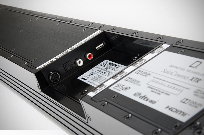 setting up a home theater is much like a rocket science to some and a definite nightmare for neat-freak. can you imagine the cables that are going to snake around your beautiful living room? scary, isn’t it? thanks to the development of single-piece sound bar such as the Definitive Technology SoloCinema XTR, almost anyone could set up a decent home theater – as long as you can read which we assume that you do know how to read, right? anyway, what makes the SoloCinema XTR are two distinct features: it has an extreme slim form factor (it measures just 6.99mm or 2 3/4″ deep) to match you anorexic-inflicted HDTV set and a wireless subwoofer that further reduces the clutter. yes, the you-do-not-need-to-pair wireless subwoofer comes standard in this pretty pricey $1,999 home theater system setup. and the sub is unusually slim too: measuring an incredible thin 6.5 inches or 16.5 cm – so that you can easily slip behind your furniture for that extra uncluttered look. well, not that it looks ugly or anything of sort but you know, its a bonus nevertheless. other highlights include three 1″ pure aluminum dome tweeter, six 3.5″ XTDD anodized aluminum mid/bass dome drivers, a 8″ long throw subwoofer, three HDMI inputs, SPDIF (optical) input, analog RCA, built-in wireless functionality, a built-in 200 watts, 9-channel Class D amplifier (250 watts for the sub), digital signal processing that’s capable of handling Dolby TrueHD, and DTS HD audio, and it comes packaged with its own ergonomic remote complete with LED indicators, separate control for center channel and subwoofer, source selection, and access to pre-set surround parameters for movie and music. check out a few more look after the break.