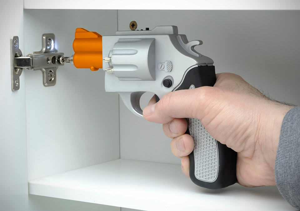 assuming that you are a home improvement Tim’s fan, then we suppose home improvement tools are a big part of your life against all your Mrs disapproval (what? don’t you already have a power screwdriver?). since you already at it, why not add the Drill Gun Power Screwdriver to your arsenal and spice things up a little? fashioned after a revolver pistol, it certainly looks nothing like a power screwdriver which probably will help you avert another nagging or questioning by your Mrs. the marvelous thing about this tool is, it is a very well thought out piece of equipment: it has an integrated LED light up where the gun barrel is and the revolver’s cylinder doubles as a holder for six screw bits. clever indeed but don’t ever wield this baby anywhere outside of your own domain because likely, the next think you will hear is police siren wailing and you know what’s going to happen after that, don’t you? oh, it is juiced by a rechargeable battery that provides a good 3 Nm of twisting power and spins it at 180 RPM. you can get this extra manly power screwdriver for an introductory price of $39.90 (usual $49.90) from Gadgets and Gear. hit the jump a few larger looks.