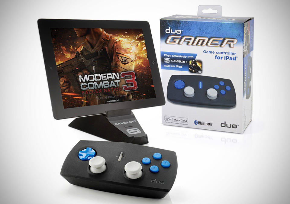 accelerometer and gyroscopes have changed how mobile games are played but honestly, they are novelty factors that will wear out and in time, we will be back craving for the tactile touch of a handheld game controller. apparently, iOS game accessories maker, Duo Games and Game Publisher, Gameloft understand this eventuality and has offer up the Duo Gamer Wireless Game Controller to keep gamer’s itch for tactile feel in check. the Duo Gamer’s box-ish construction features dual analog thumb-sticks, six buttons including a d-pad, and connects to your iDevice – iPhone, iPad or iPod touch – wirelessly via Bluetooth. it comes with a handy stand to hold your iDevice, allowing both of your hands to be on the controller full-time. perfect accessory for any die-hard iOS gamers, especially if you love to hook up your iDevice to your big screen TV for some immersive gameplay which makes us think: who needs a game console anymore? the Duo Gamer Wireless Game Controller can be yours for $79.90 a pop. check out the product trailer after the break.