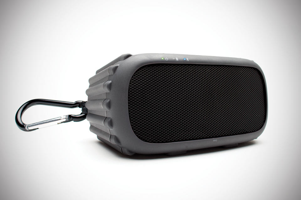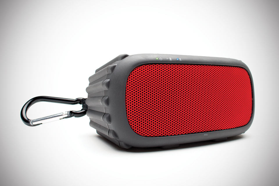 it uses Bluetooth technology for wireless audio streaming from your smartphone or any Bluetooth-enabled devices, and a rechargeable lithium battery pack keeps it going for up to 10 hours on a single full charge. thanks to its built-in waterproof microphone for its speakerphone functionality, it can even take incoming calls when in wet conditions. it comes with a standard 1/4″ camera screw mount, in case you want it to be on a tripod, if not a removable carabiner is in place for you to clamp it to your backpack, tent, bicycle or wherever you desire, so that you can keep it on the outside and share your tunes while on the move. available in three colorways: red, orange, and black, for $129.99 a pop.